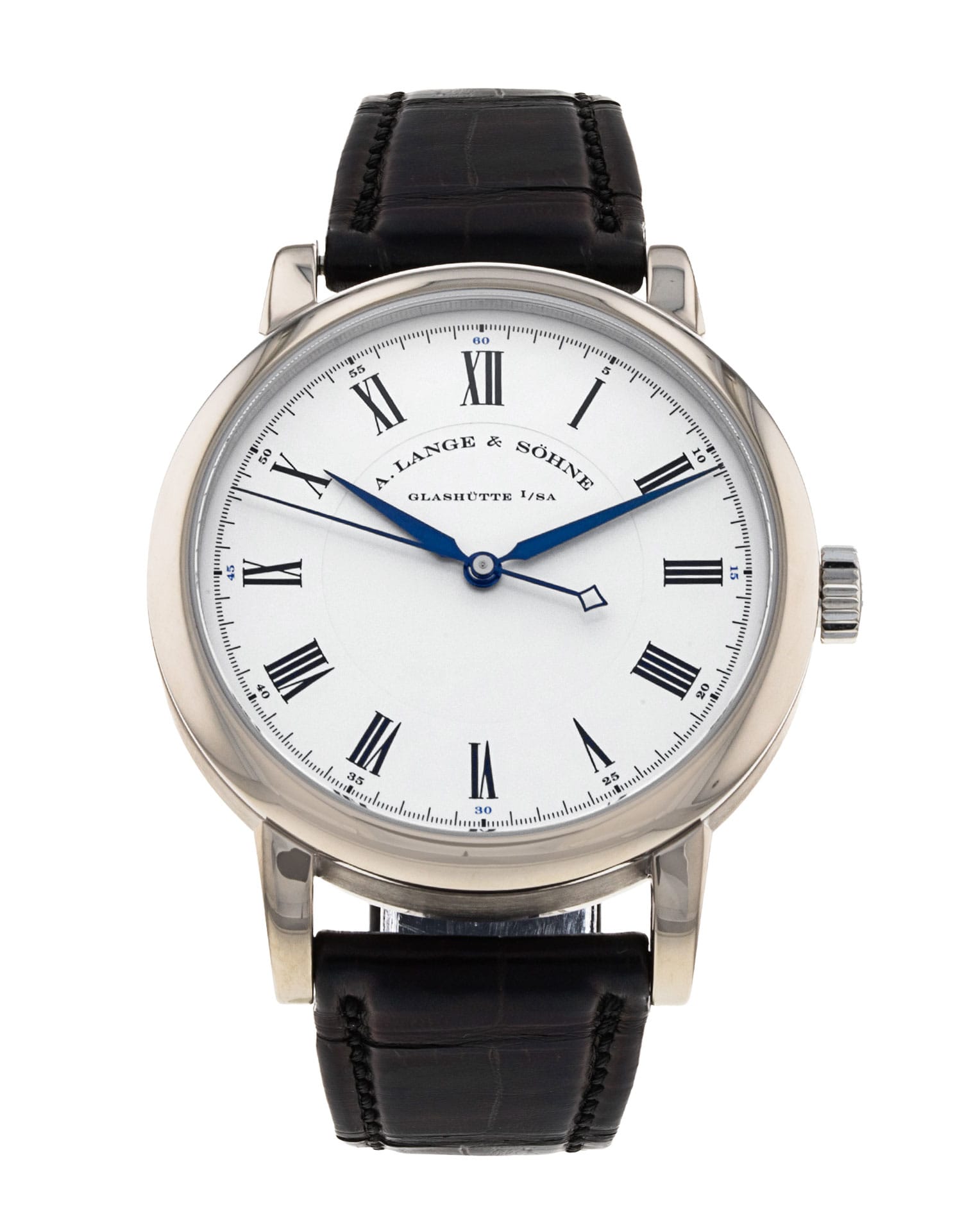 This A. Lange and Sohne Richard Lange 232.026 has a silver roman numeral dial and a leather strap. This A. Lange and Sohne has undergone a thorough inspection of water resistance, accuracy, functionality and condition to determine the level of reconditioning required to meet our strict standards. It has also been referenced against technical documents and manufacturer records where available to ensure authenticity and a clean history. Our watches have a 24-month warranty for your peace of mind, in conjunction with any remaining manufacturer’s warranty from new or from service.