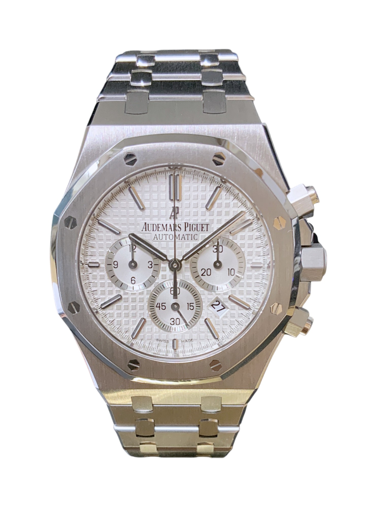 This Audemars Piguet Royal Oak 26320ST.OO.1220ST.02 has a silver baton dial and a bracelet strap. This Audemars Piguet has undergone a thorough inspection of accuracy, functionality and condition at our Audemars Piguet certified service centre to determine the level of reconditioning required to meet our strict standards. It has also been checked against our records to ensure authenticity. All our watches have a 24-month warranty for your peace of mind.