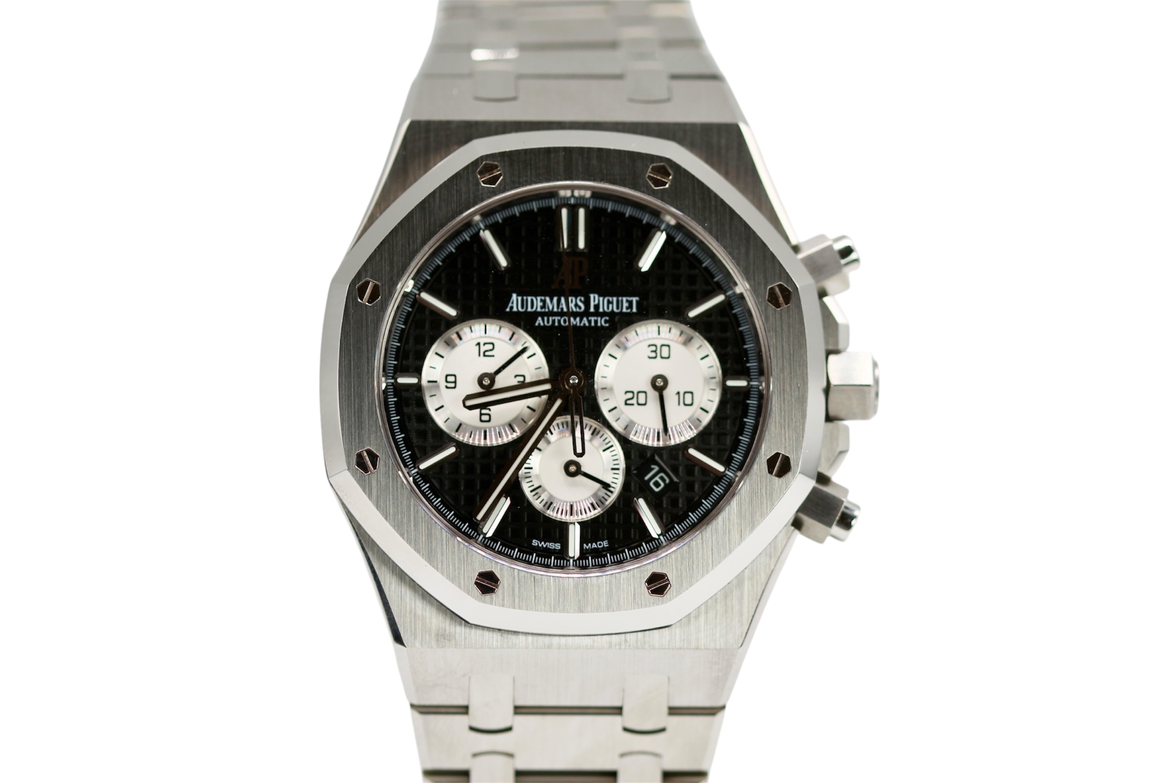 This Audemars Piguet Royal Oak 26331ST.OO.1220ST.02 has a black baton dial and a bracelet strap. This Audemars Piguet has undergone a thorough inspection of accuracy, functionality and condition at our Audemars Piguet certified service centre to determine the level of reconditioning required to meet our strict standards. It has also been checked against our records to ensure authenticity. All our watches have a 24-month warranty for your peace of mind.