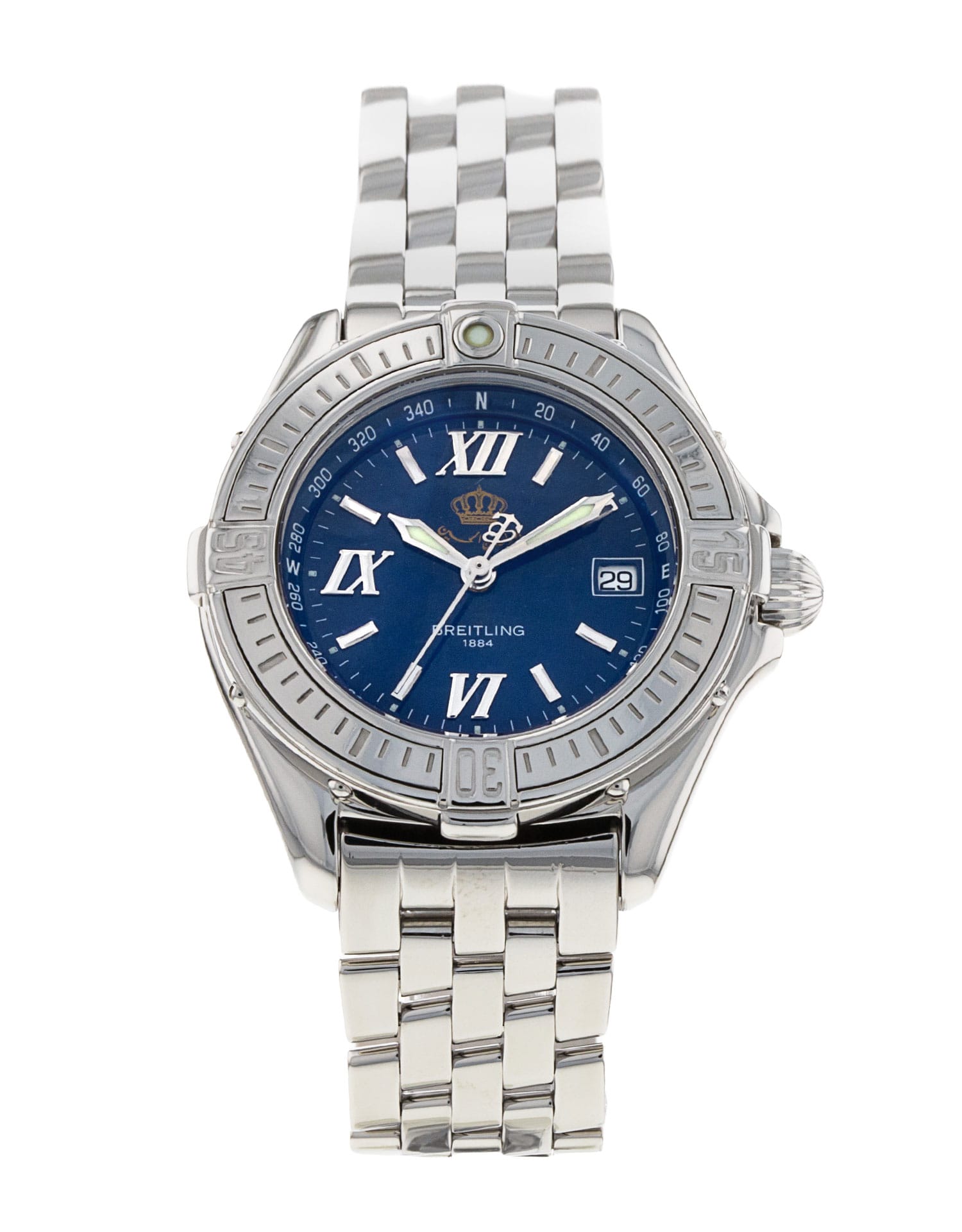 This Breitling B Class A71365 has a blue quarter roman numeral dial and a bracelet strap. This Breitling has undergone a thorough inspection of water resistance, accuracy, functionality and condition to determine the level of reconditioning required to meet our strict standards. It has also been referenced against technical documents and manufacturer records where available to ensure authenticity and a clean history. All our watches have a 24-month warranty for your peace of mind.