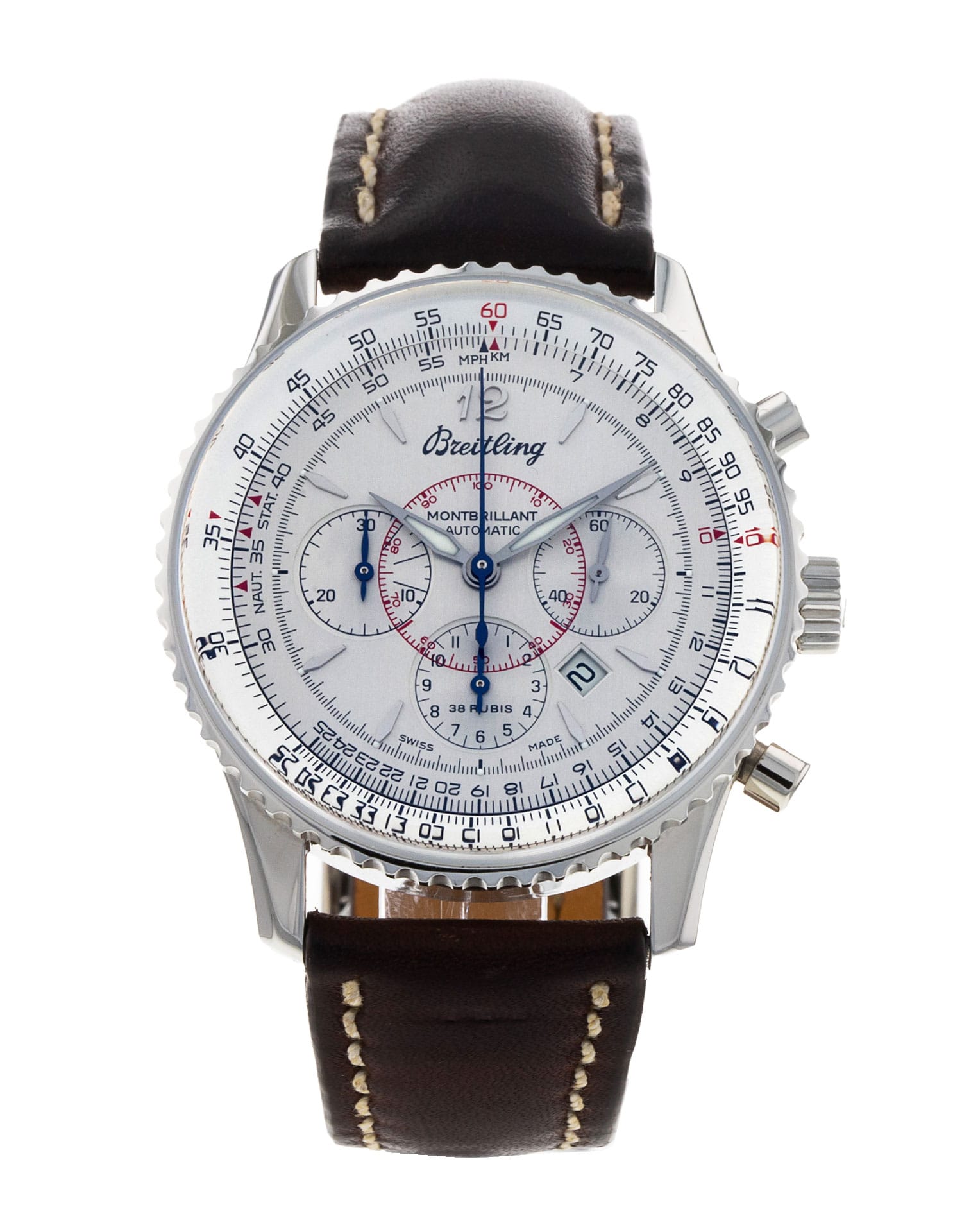 This Breitling Montbrillant A41330 has a silver baton dial and a leather strap. This Breitling has undergone a thorough inspection of water resistance, accuracy, functionality and condition to determine the level of reconditioning required to meet our strict standards. It has also been referenced against technical documents and manufacturer records where available to ensure authenticity and a clean history. Our watches have a 24-month warranty for your peace of mind, in conjunction with any remaining manufacturer’s warranty from new or from service.
