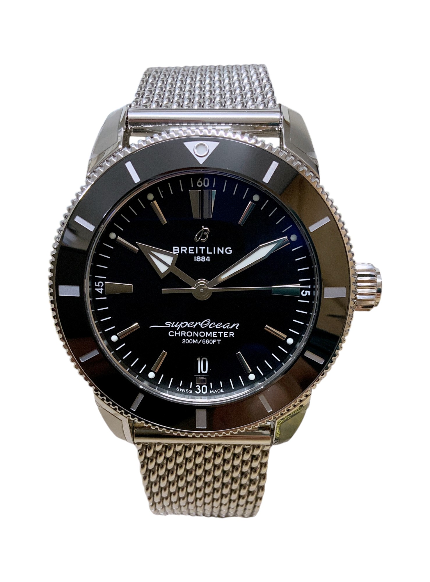 This Breitling SuperOcean Heritage II 44 AB2030 has a black baton dial and a bracelet strap. This Breitling has undergone a thorough inspection of water resistance, accuracy, functionality and condition to determine the level of reconditioning required to meet our strict standards. It has also been referenced against technical documents and manufacturer records where available to ensure authenticity and a clean history. Our watches have a 24-month warranty for your peace of mind, in conjunction with any remaining manufacturer’s warranty from new or from service.
