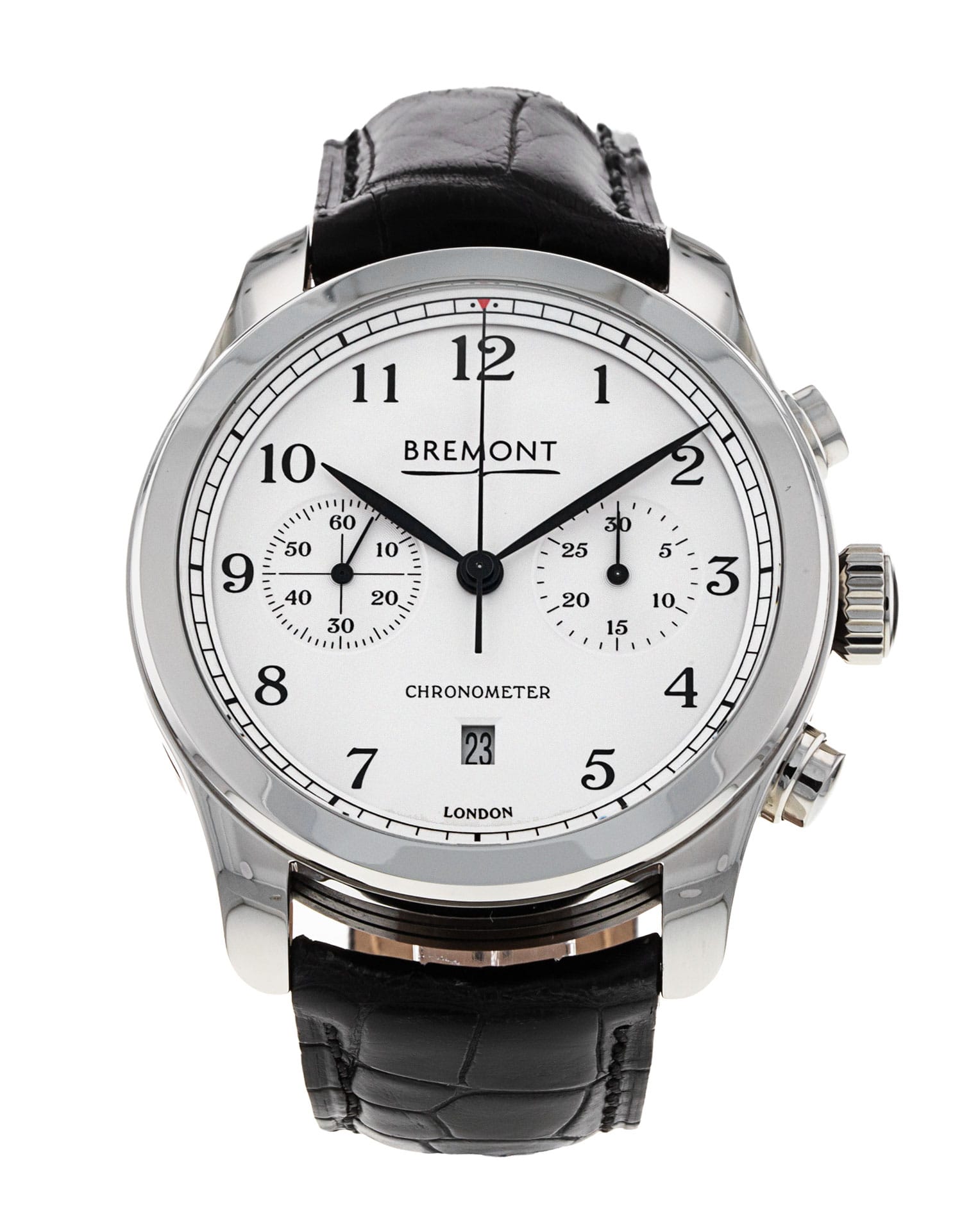 This Bremont ALT1 ALT1-C/PW has a white arabic dial and a leather strap. This Bremont has undergone a thorough inspection of water resistance, accuracy, functionality and condition to determine the level of reconditioning required to meet our strict standards. It has also been referenced against technical documents and manufacturer records where available to ensure authenticity and a clean history. Our watches have a 24-month warranty for your peace of mind, in conjunction with any remaining manufacturer’s warranty from new or from service.