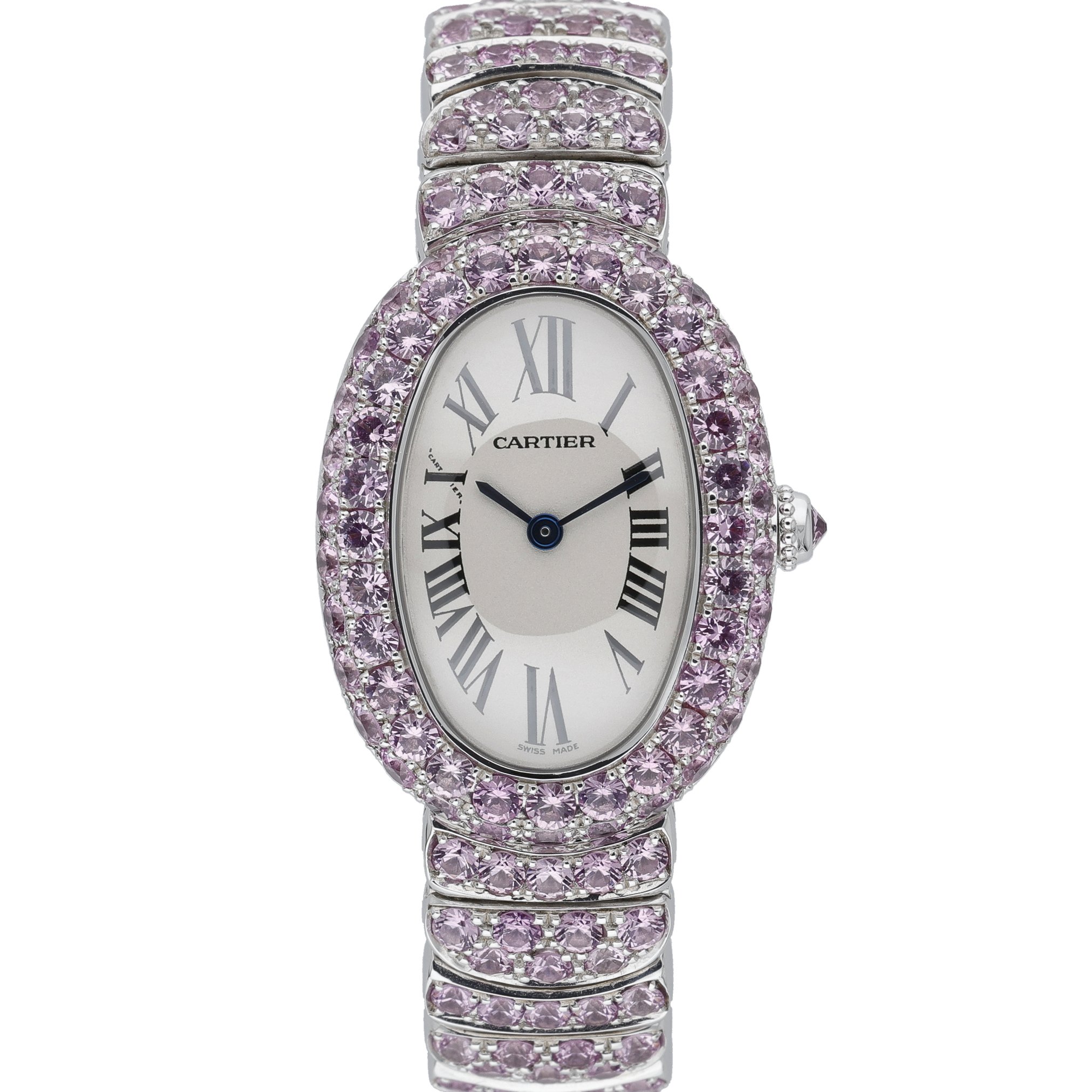This Cartier Baignoire WB520019 has a silver roman numeral dial and a bracelet strap. This Cartier has undergone a thorough inspection of accuracy, functionality and condition at our Cartier certified service centre to determine the level of reconditioning required to meet our strict standards. It has also been checked against our records to ensure authenticity. All our watches have a 24-month warranty for your peace of mind.