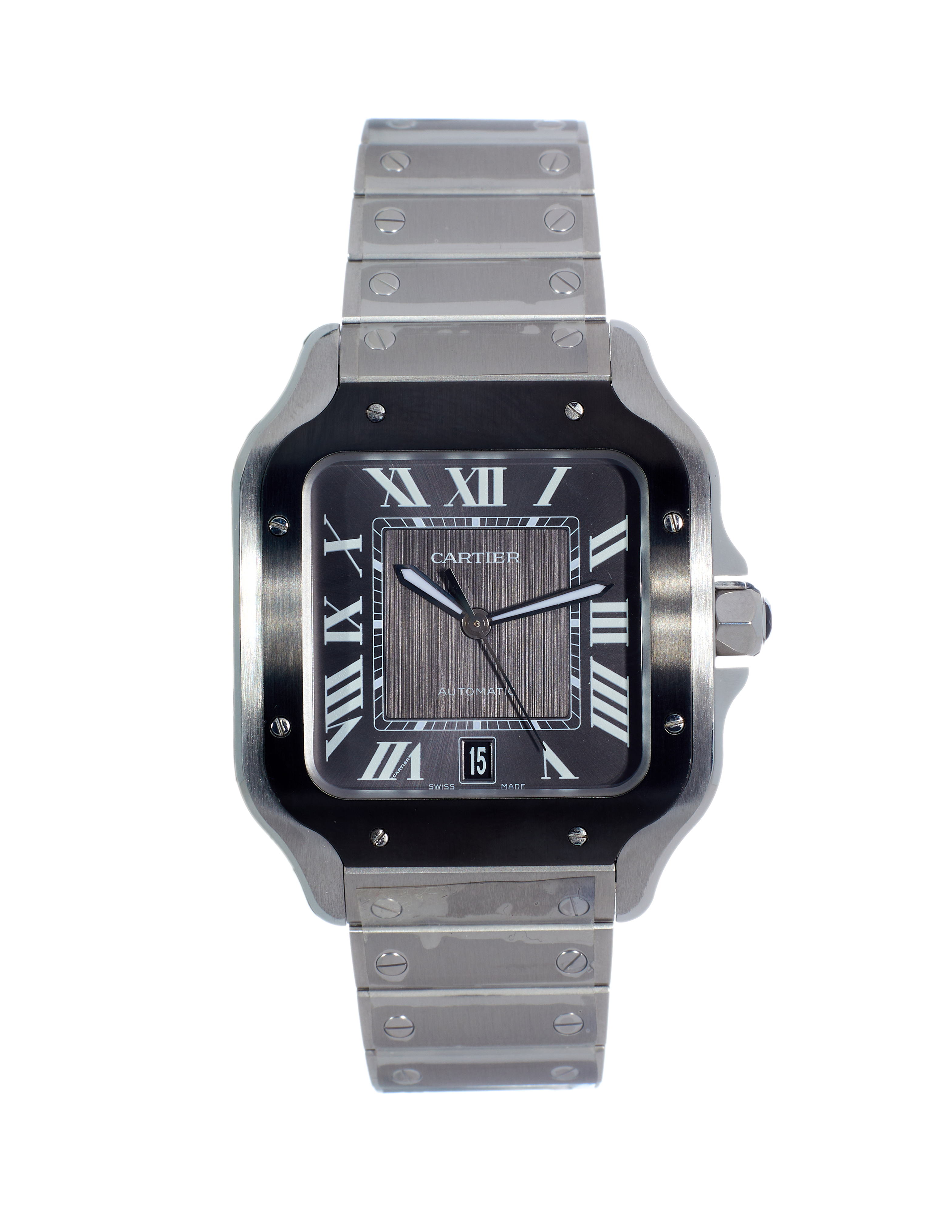 This Cartier Santos De Cartier WSSA0037 has a grey roman numeral dial and a bracelet strap. This Cartier has undergone a thorough inspection of accuracy, functionality and condition at our Cartier certified service centre to determine the level of reconditioning required to meet our strict standards. It has also been checked against our records to ensure authenticity. All our watches have a 24-month warranty for your peace of mind.