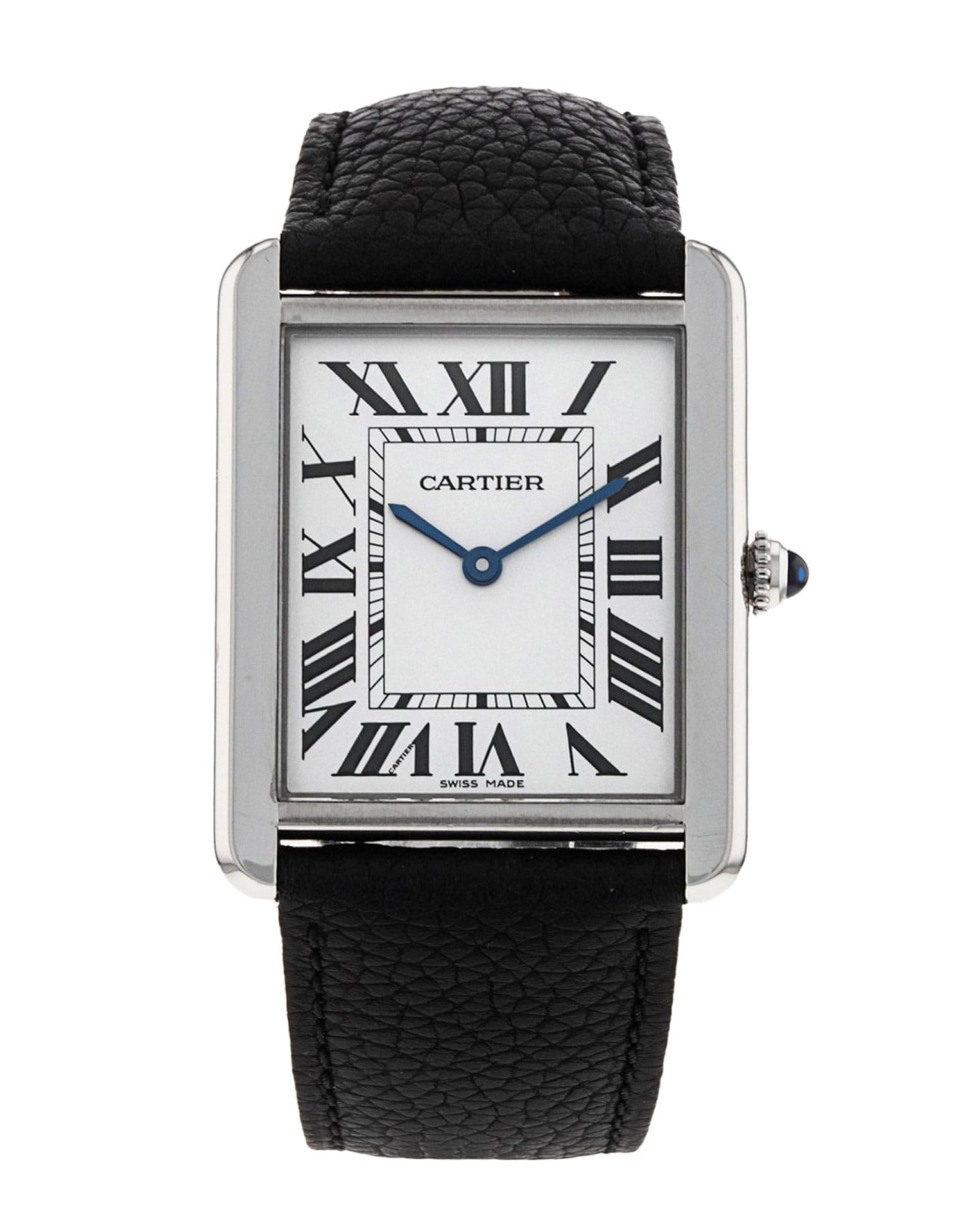 This Cartier Tank Solo W5200003 has a silver roman numeral dial and a leather strap. This Cartier has undergone a thorough inspection of accuracy, functionality and condition at our Cartier certified service centre to determine the level of reconditioning required to meet our strict standards. It has also been checked against our records to ensure authenticity. All our watches have a 24-month warranty for your peace of mind.