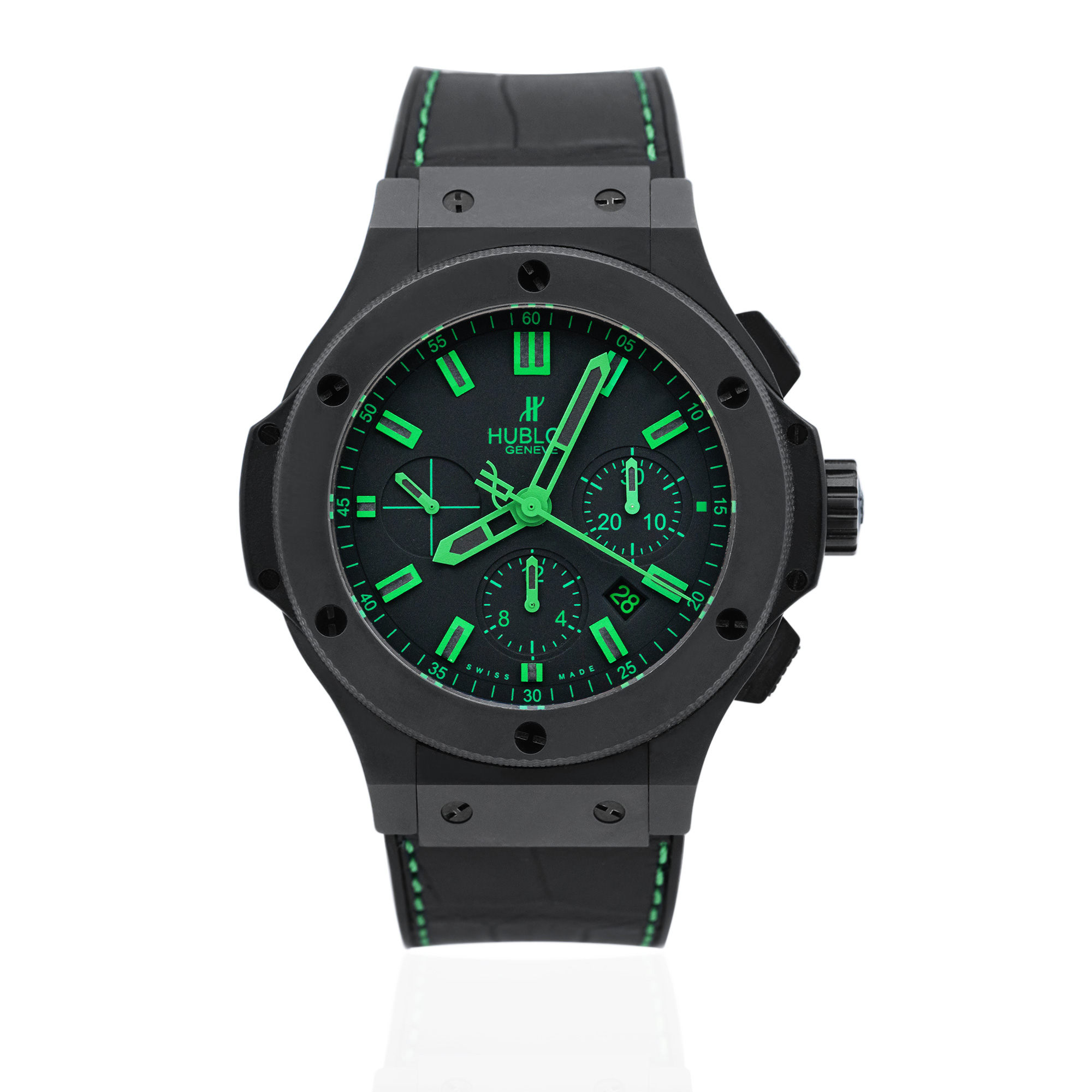 This Hublot Big Bang 301.CI.1190.GR.ABG11 has a black & green dial and a leather strap. This Hublot has undergone a thorough inspection of water resistance, accuracy, functionality and condition to determine the level of reconditioning required to meet our strict standards. It has also been referenced against technical documents and manufacturer records where available to ensure authenticity and a clean history. All our watches have a 24-month warranty for your peace of mind.
