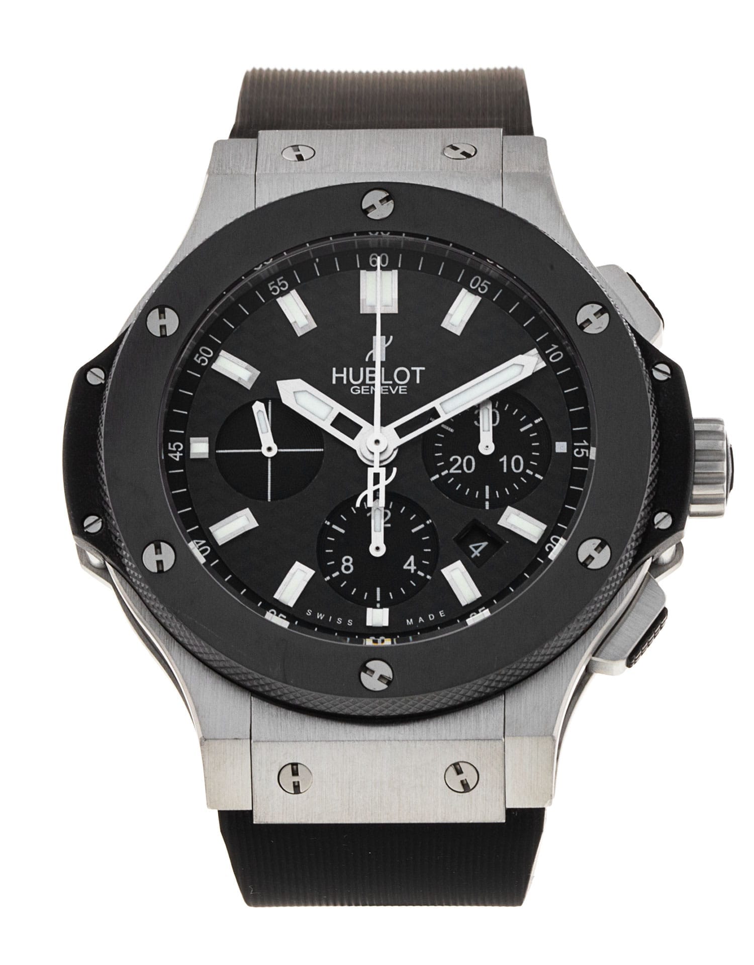This Hublot Big Bang 301.SM.1770.RX has a black baton dial and a rubber strap. This Hublot has undergone a thorough inspection of water resistance, accuracy, functionality and condition to determine the level of reconditioning required to meet our strict standards. It has also been referenced against technical documents and manufacturer records where available to ensure authenticity and a clean history. All our watches have a 24-month warranty for your peace of mind.