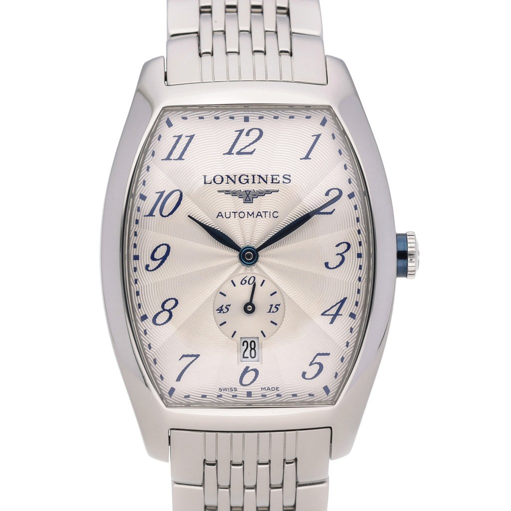This Longines Evidenza L2.642.4.73.6 has a silver arabic dial and a bracelet strap. This Longines has undergone a thorough inspection of accuracy, functionality and condition at our Longines certified service centre to determine the level of reconditioning required to meet our strict standards. It has also been checked against our records to ensure authenticity. All our watches have a 24-month warranty for your peace of mind.