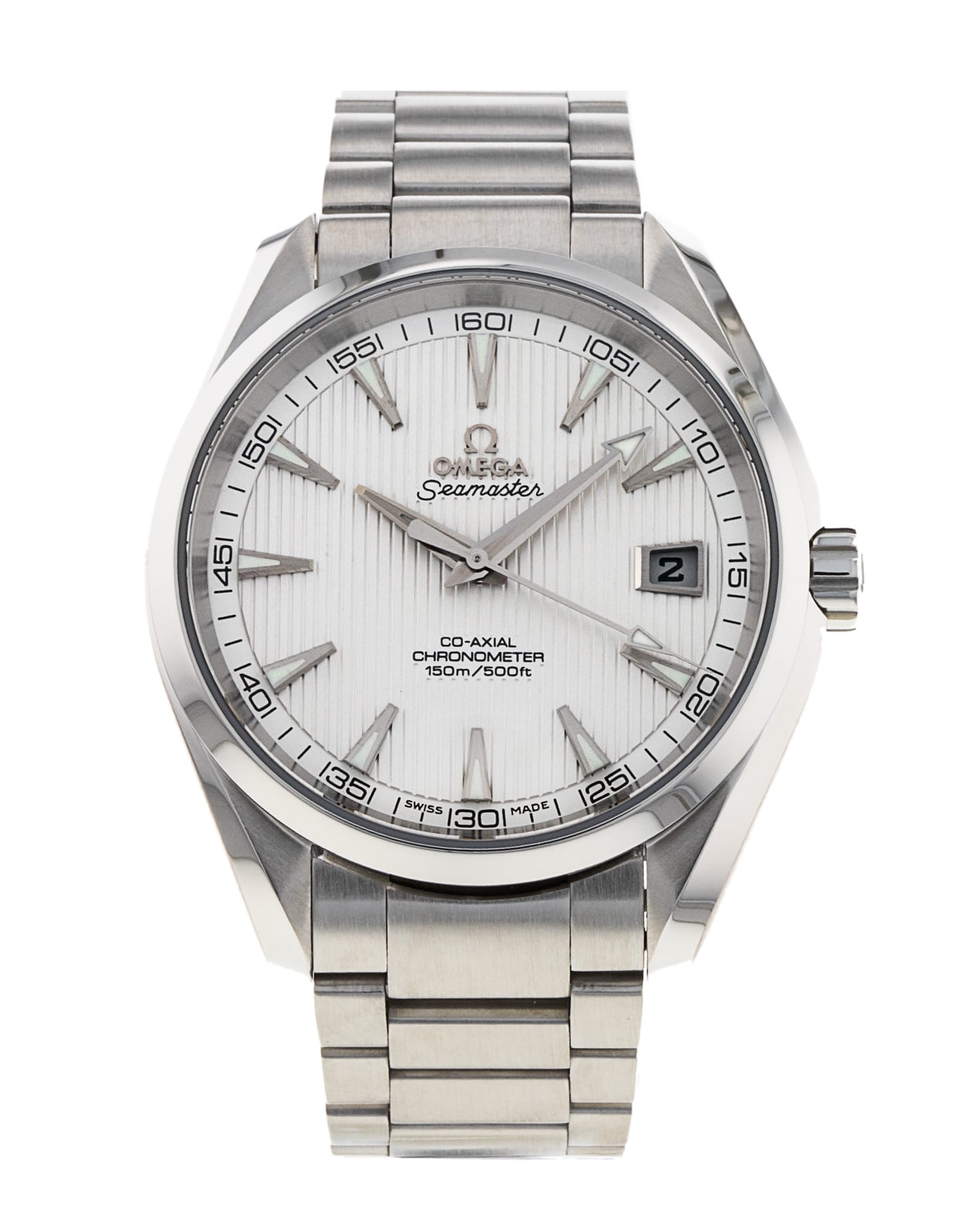 This Omega Aqua Terra 150m Gents 231.10.42.21.02.001 has a silver baton dial and a bracelet strap. This Omega has undergone a thorough inspection of accuracy, functionality and condition at our Omega certified service centre to determine the level of reconditioning required to meet our strict standards. It has also been checked against our records to ensure authenticity. All our watches have a 24-month warranty for your peace of mind.