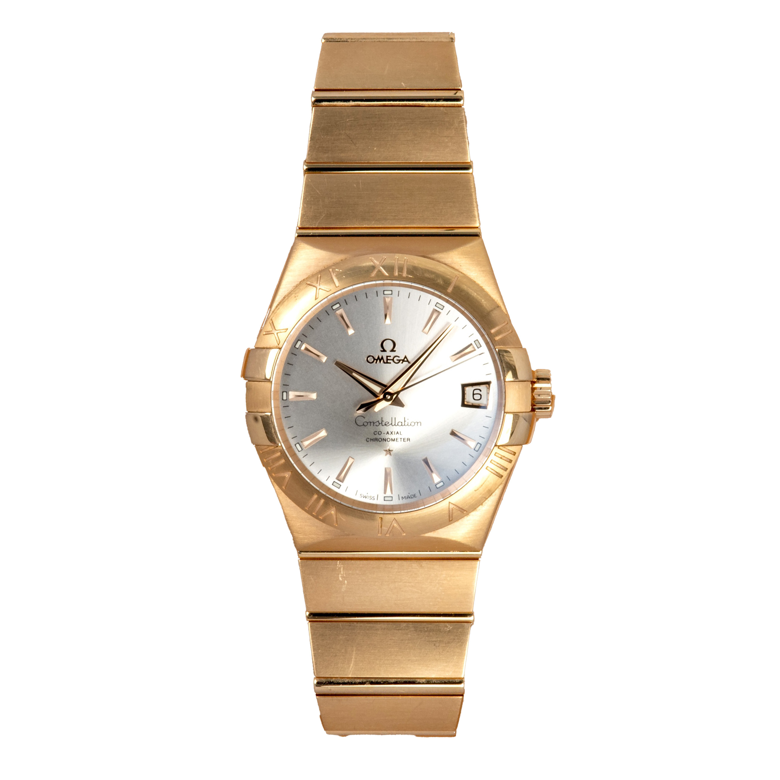 This Omega Constellation Chronometer 123.50.38.21.02.001 has a silver baton dial and a bracelet strap. This Omega has undergone a thorough inspection of accuracy, functionality and condition at our Omega certified service centre to determine the level of reconditioning required to meet our strict standards. It has also been checked against our records to ensure authenticity. All our watches have a 24-month warranty for your peace of mind.