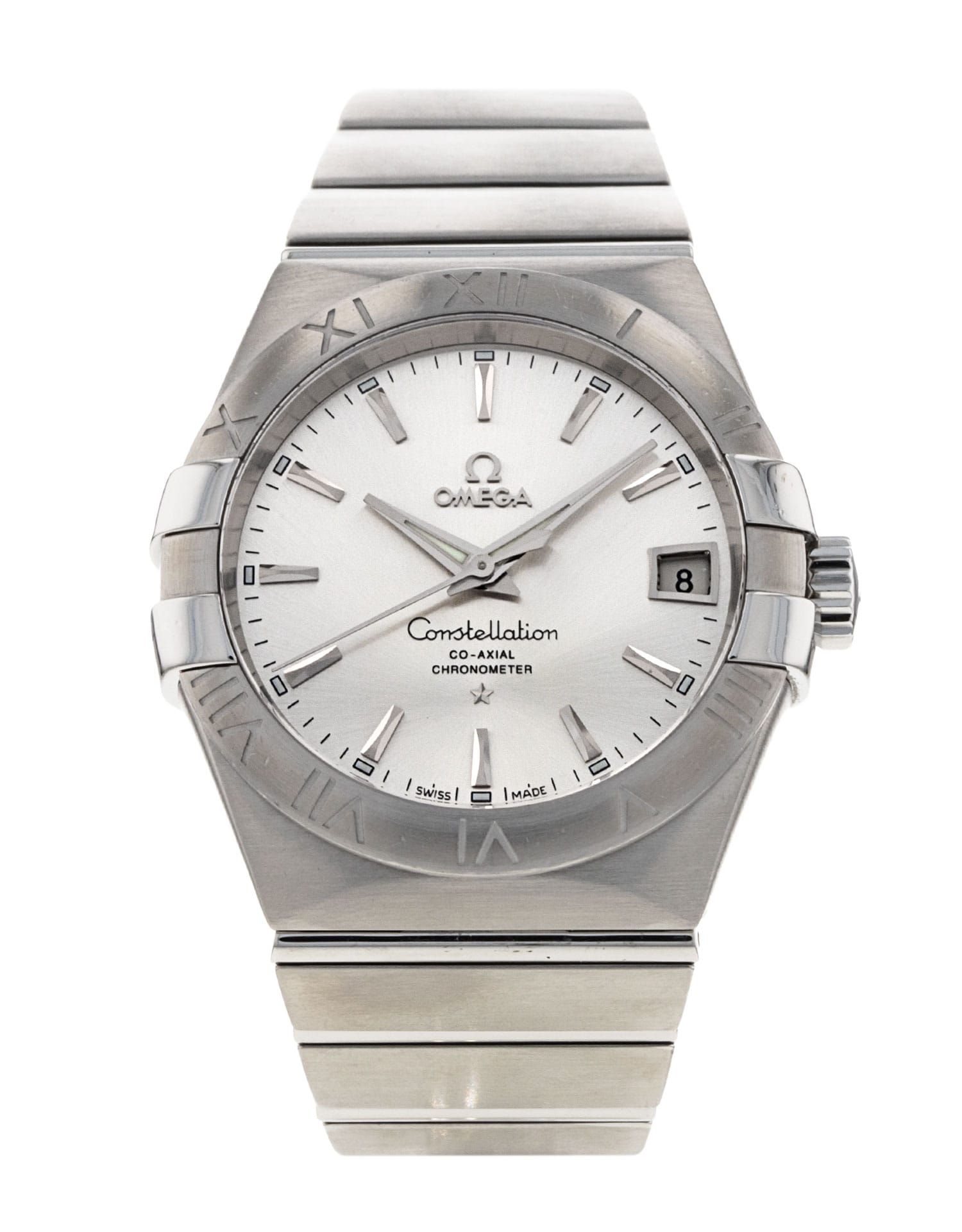 This Omega Constellation 123.10.38.21.02.001 has a silver baton dial and a bracelet strap. This Omega has undergone a thorough inspection of accuracy, functionality and condition at our Omega certified service centre to determine the level of reconditioning required to meet our strict standards. It has also been checked against our records to ensure authenticity. All our watches have a 24-month warranty for your peace of mind.