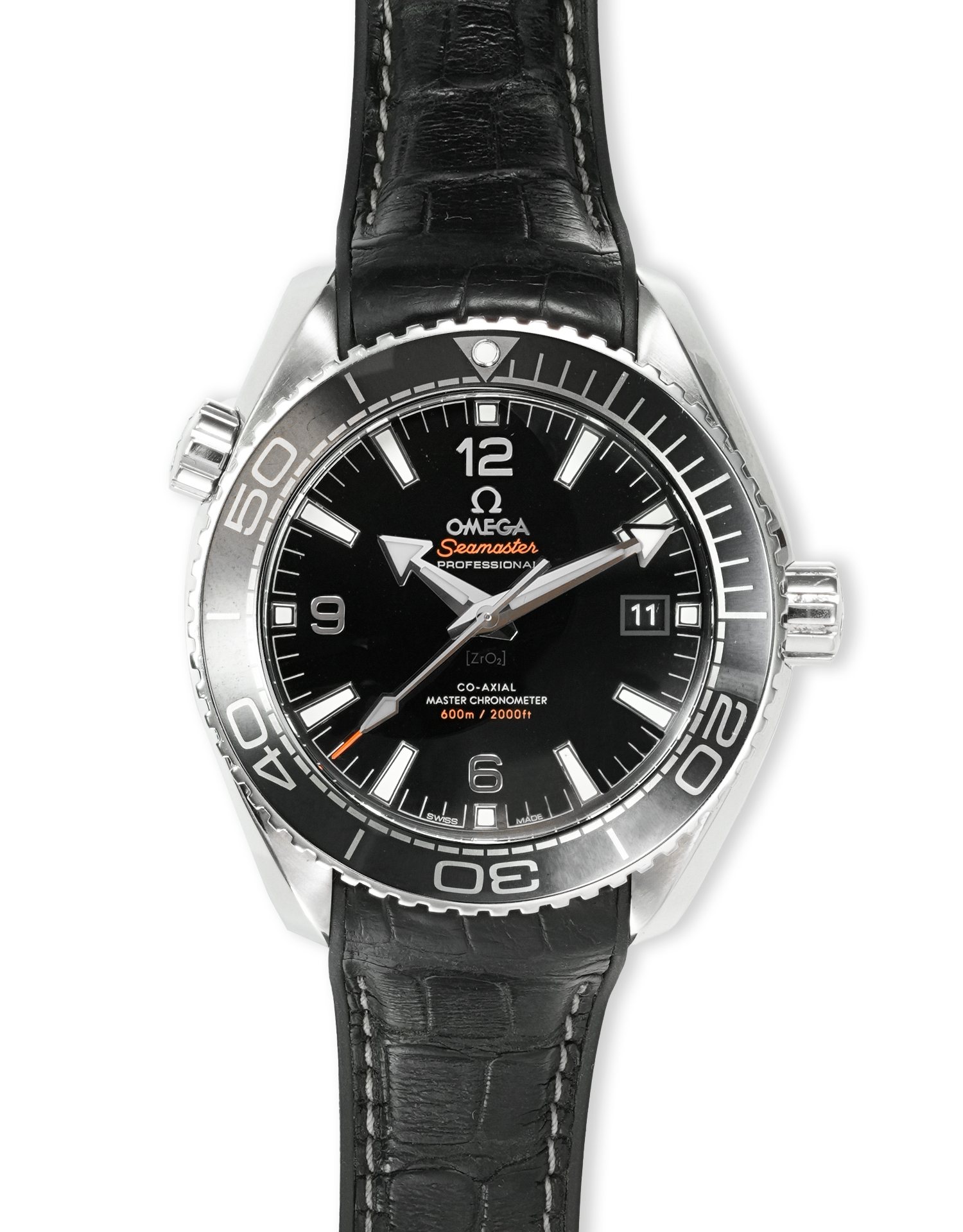 This Omega Planet Ocean 215.33.44.21.01.001 has a black quarter arabic dial and a leather strap. This Omega has undergone a thorough inspection of accuracy, functionality and condition at our Omega certified service centre to determine the level of reconditioning required to meet our strict standards. It has also been checked against our records to ensure authenticity. All our watches have a 24-month warranty for your peace of mind.