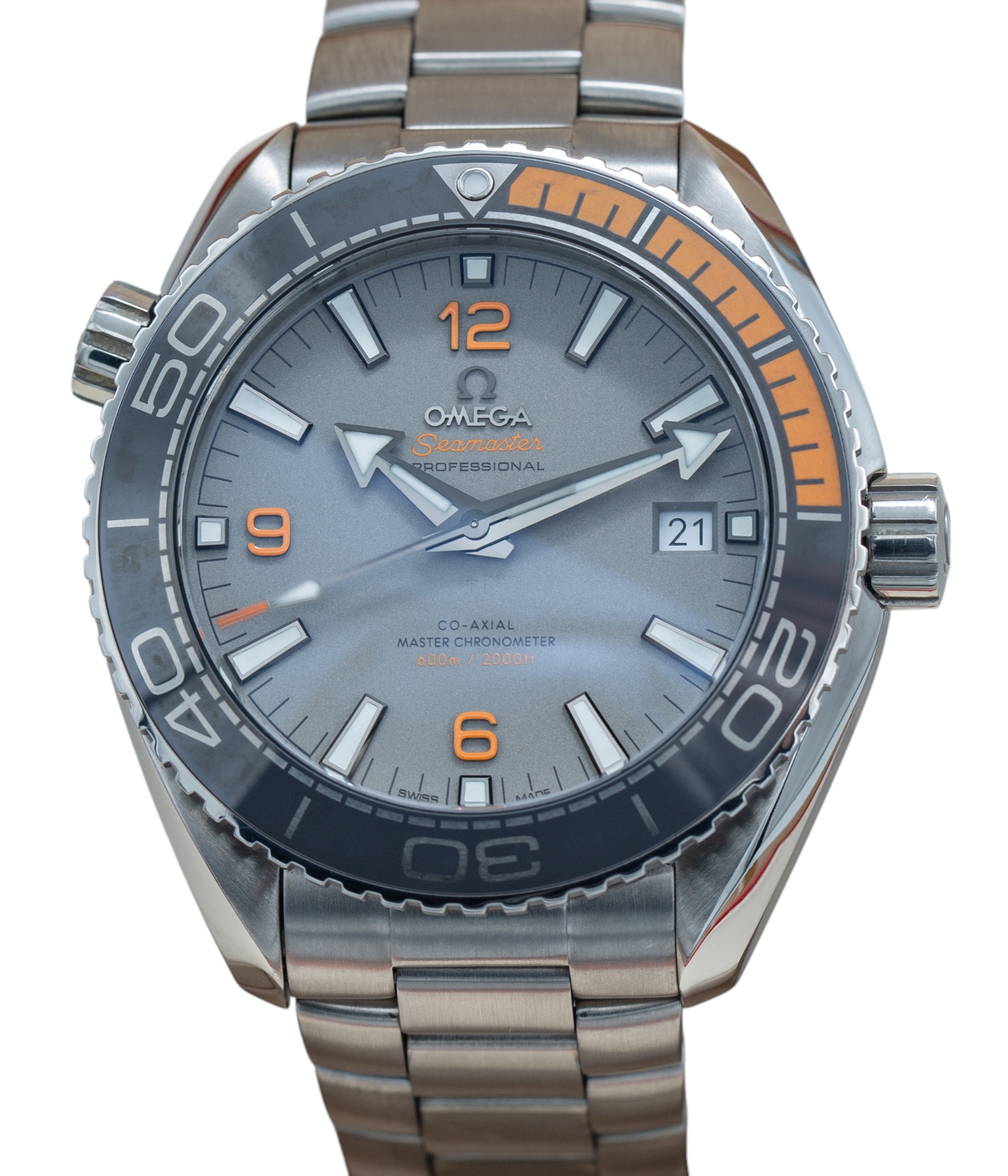 This Omega Planet Ocean 215.90.44.21.99.001 has a grey quarter arabic dial and a bracelet strap. This Omega has undergone a thorough inspection of accuracy, functionality and condition at our Omega certified service centre to determine the level of reconditioning required to meet our strict standards. It has also been checked against our records to ensure authenticity. All our watches have a 24-month warranty for your peace of mind.
