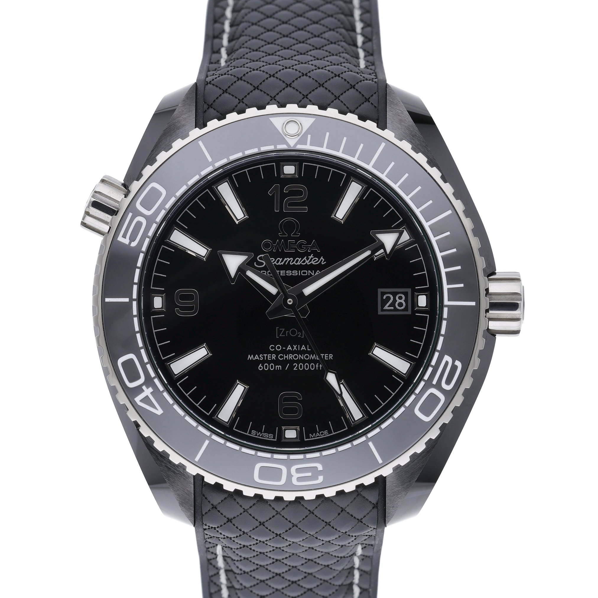 This Omega Planet Ocean 215.92.40.20.01.001 has a black quarter arabic dial and a rubber strap. This Omega has undergone a thorough inspection of accuracy, functionality and condition at our Omega certified service centre to determine the level of reconditioning required to meet our strict standards. It has also been checked against our records to ensure authenticity. All our watches have a 24-month warranty for your peace of mind.