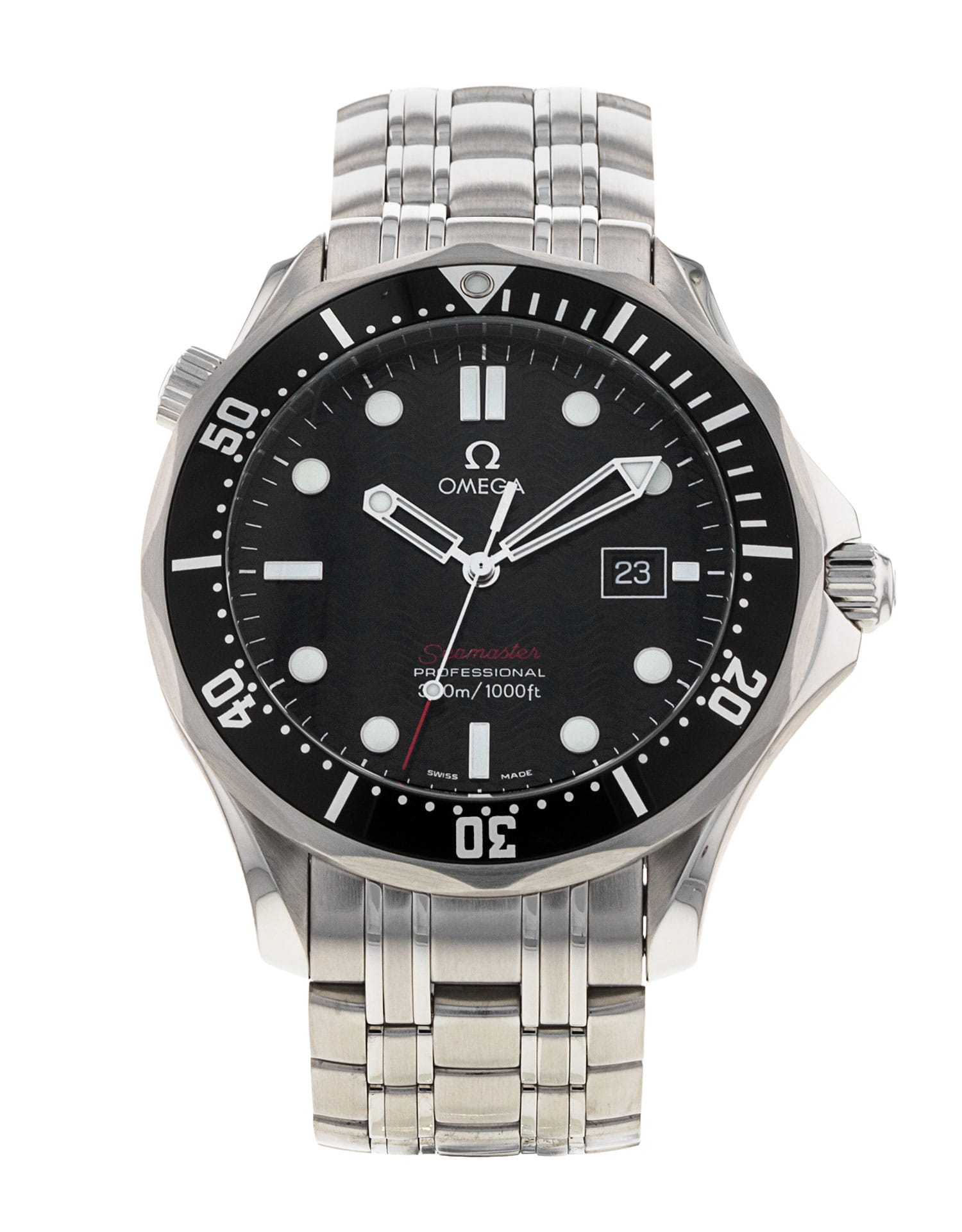 The Seamaster is one of the most iconic diving watches of all time. Following on from Omega's Marine in 1932, the world's first commercially available diving watch, the legend of the Seamaster officially debuted in 1948. By the time of 1957's 300M, it was among the most dependable and professionally sought dive watches from any brand, and it soon pioneered some of the sporty must-have features we associate with such watches, including unidirectional bezels, phosphorescent hands and the helium escape valve. This excellent example takes the familiar technical specs and design cues from the early Seamasters and updates them with modern finishing and a wave pattern on the dial.