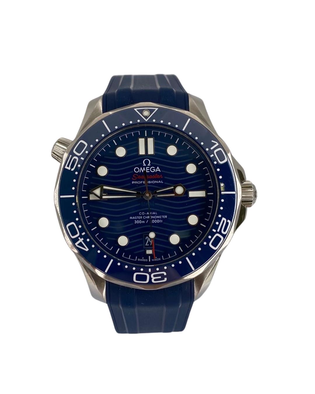 This Omega Seamaster Diver 300m 210.32.42.20.03.001 has a blue dial and a rubber strap. This Omega has undergone a thorough inspection of accuracy, functionality and condition at our Omega certified service centre to determine the level of reconditioning required to meet our strict standards. It has also been checked against our records to ensure authenticity. All our watches have a 24-month warranty for your peace of mind.