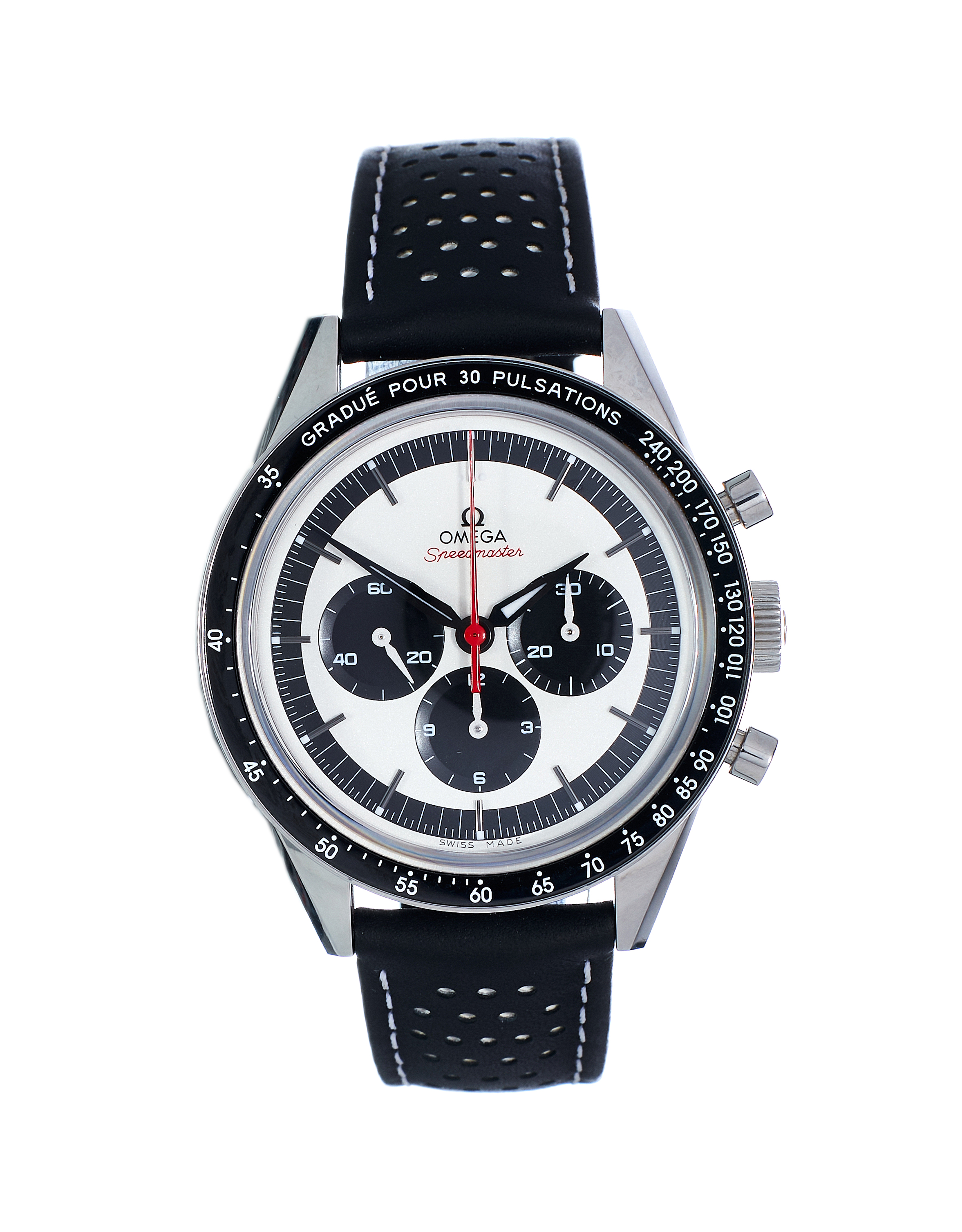 This Omega Speedmaster CK2998 311.32.40.30.02.001 has a silver baton dial and a leather strap. This Omega has undergone a thorough inspection of accuracy, functionality and condition at our Omega certified service centre to determine the level of reconditioning required to meet our strict standards. It has also been checked against our records to ensure authenticity. All our watches have a 24-month warranty for your peace of mind.