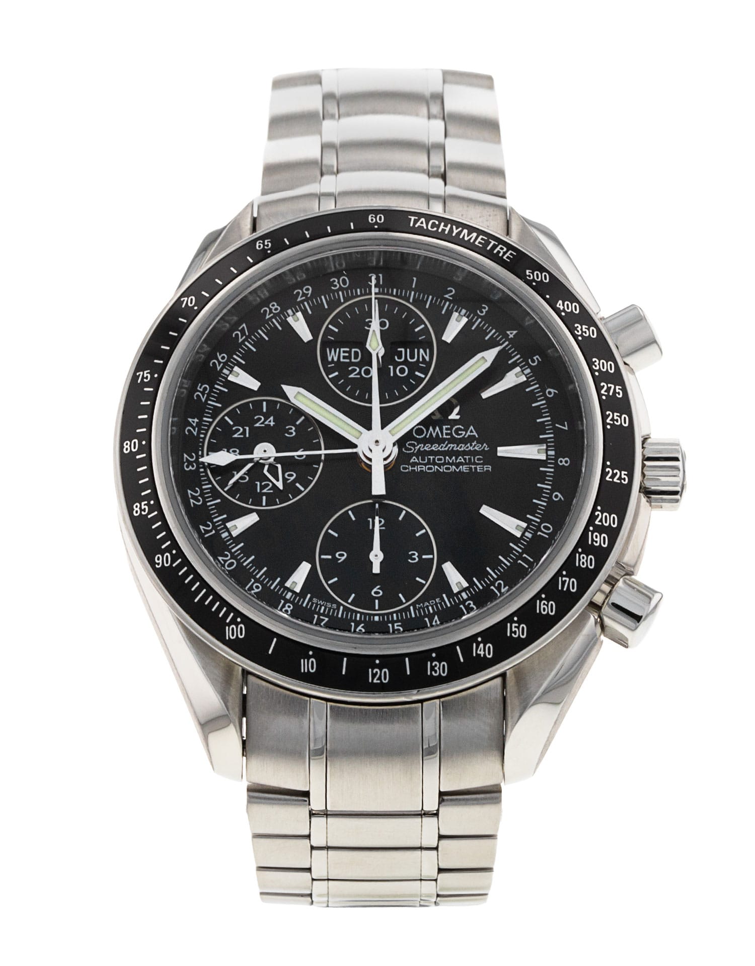 This Omega Speedmaster DayDate 3220.50.00 has a black baton dial and a bracelet strap. This Omega has undergone a thorough inspection of accuracy, functionality and condition at our Omega certified service centre to determine the level of reconditioning required to meet our strict standards. It has also been checked against our records to ensure authenticity. All our watches have a 24-month warranty for your peace of mind.