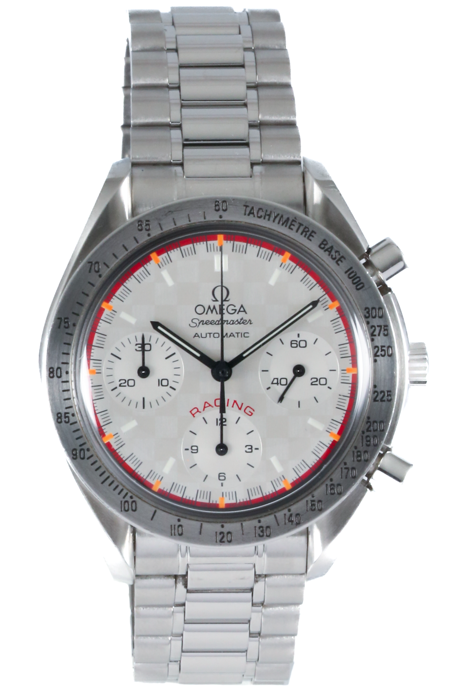 This Omega Speedmaster Racing 3517.30.00 has a silver baton dial and a bracelet strap. This Omega has undergone a thorough inspection of accuracy, functionality and condition at our Omega certified service centre to determine the level of reconditioning required to meet our strict standards. It has also been checked against our records to ensure authenticity. All our watches have a 24-month warranty for your peace of mind.