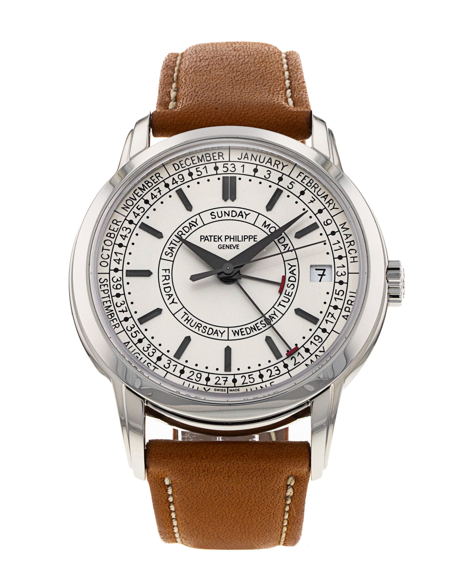 This Patek Philippe Complications 5212A-001 has a silver dial and a leather strap. This Patek Philippe has undergone a thorough inspection of water resistance, accuracy, functionality and condition to determine the level of reconditioning required to meet our strict standards. It has also been referenced against technical documents and manufacturer records where available to ensure authenticity and a clean history. Our watches have a 24-month warranty for your peace of mind, in conjunction with any remaining manufacturer’s warranty from new or from service.