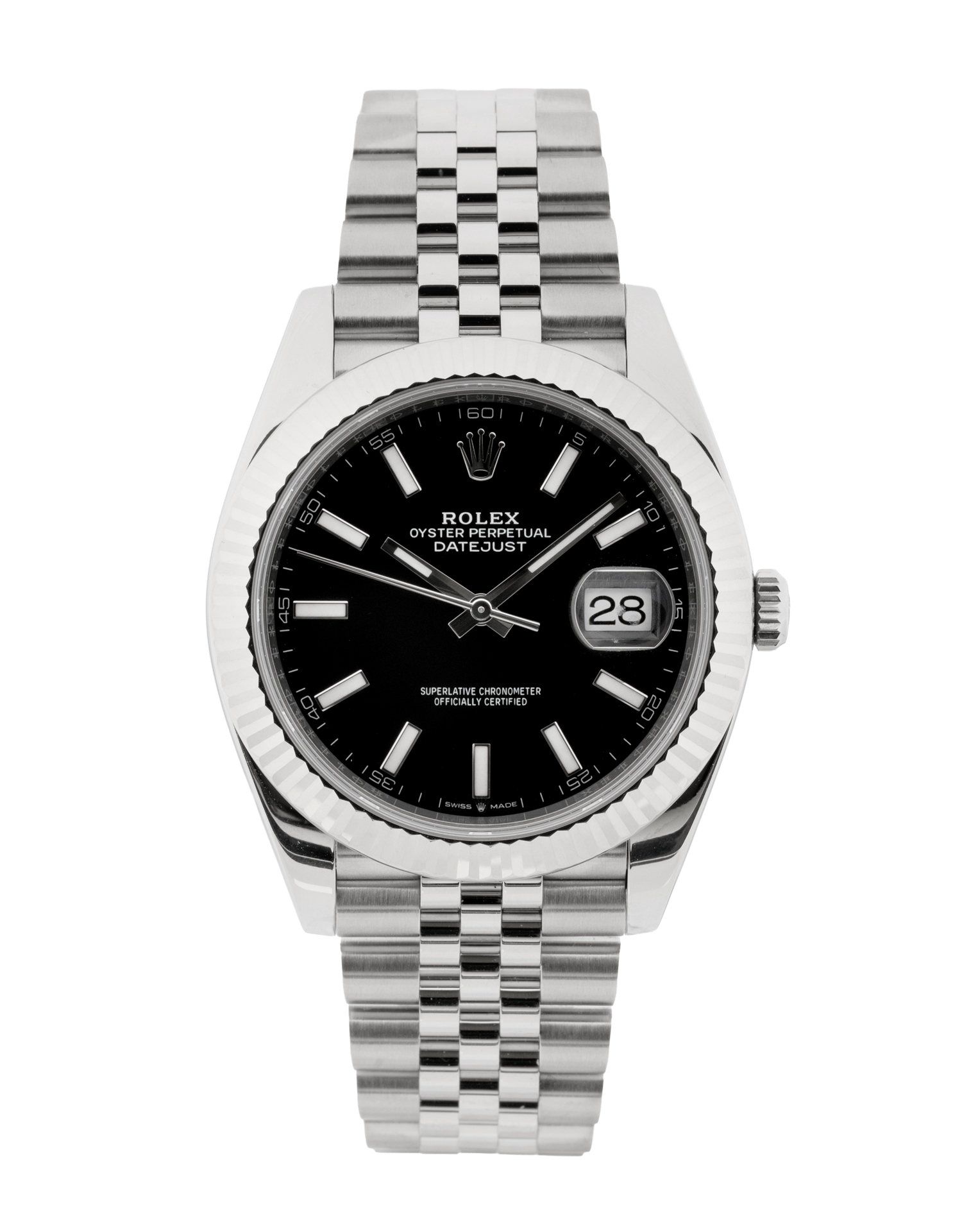 This Rolex Datejust 41 126334 has a black baton dial and a bracelet strap. This Rolex has undergone a thorough inspection of water resistance, accuracy, functionality and condition to determine the level of reconditioning required to meet our strict standards. It has also been referenced against technical documents and manufacturer records where available to ensure authenticity and a clean history. Our watches have a 24-month warranty for your peace of mind, in conjunction with any remaining manufacturer’s warranty from new or from service. To maintain the manufacturer’s warranty on this watch, it has not been polished in our service centre.