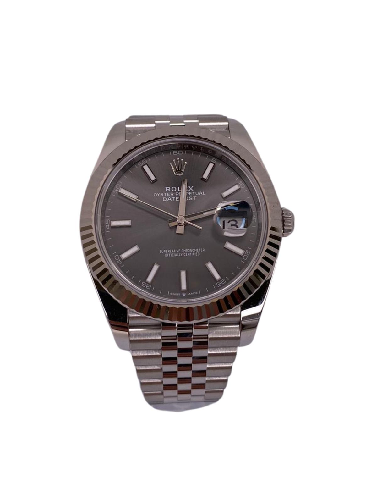 This Rolex Datejust 41 126334 has a rhodium baton dial and a bracelet strap. This Rolex has undergone a thorough inspection of water resistance, accuracy, functionality and condition to determine the level of reconditioning required to meet our strict standards. It has also been referenced against technical documents and manufacturer records where available to ensure authenticity and a clean history. Our watches have a 24-month warranty for your peace of mind, in conjunction with any remaining manufacturer’s warranty from new or from service. To maintain the manufacturer’s warranty on this watch, it has not been polished in our service centre.