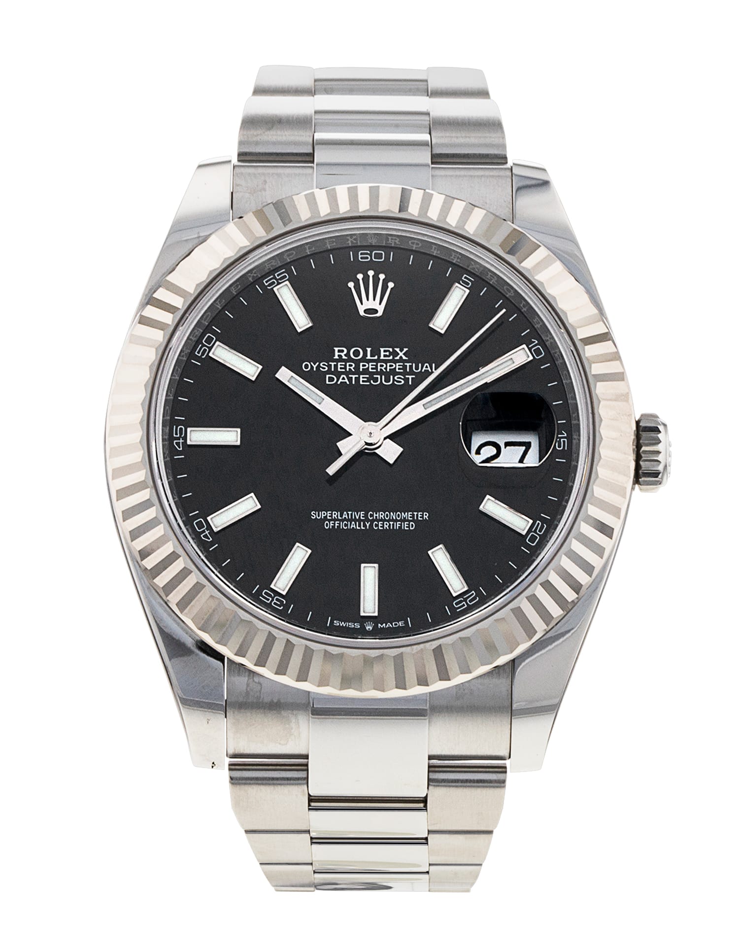 This Rolex Datejust 41 126334 has a black baton dial and a bracelet strap. This Rolex has undergone a thorough inspection of water resistance, accuracy, functionality and condition to determine the level of reconditioning required to meet our strict standards. It has also been referenced against technical documents and manufacturer records where available to ensure authenticity and a clean history. Our watches have a 24-month warranty for your peace of mind, in conjunction with any remaining manufacturer’s warranty from new or from service. To maintain the manufacturer’s warranty on this watch, it has not been polished in our service centre.