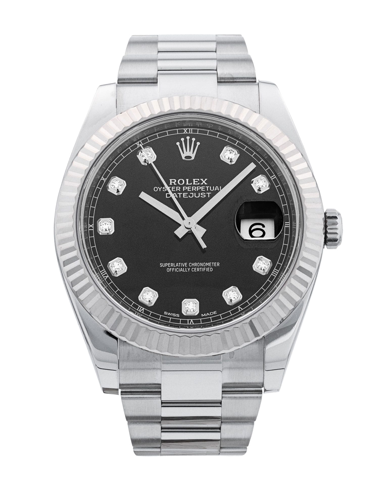 This Rolex Datejust 41 126334 has a black diamond dial and a bracelet strap. This Rolex has undergone a thorough inspection of water resistance, accuracy, functionality and condition to determine the level of reconditioning required to meet our strict standards. It has also been referenced against technical documents and manufacturer records where available to ensure authenticity and a clean history. All our watches have a 24-month warranty for your peace of mind. One of our skilled polishing technicians has removed marks on the case and bracelet of this watch, brought about by daily wear and tear, which is why this watch does not come with the remaining manufacturer’s warranty.
