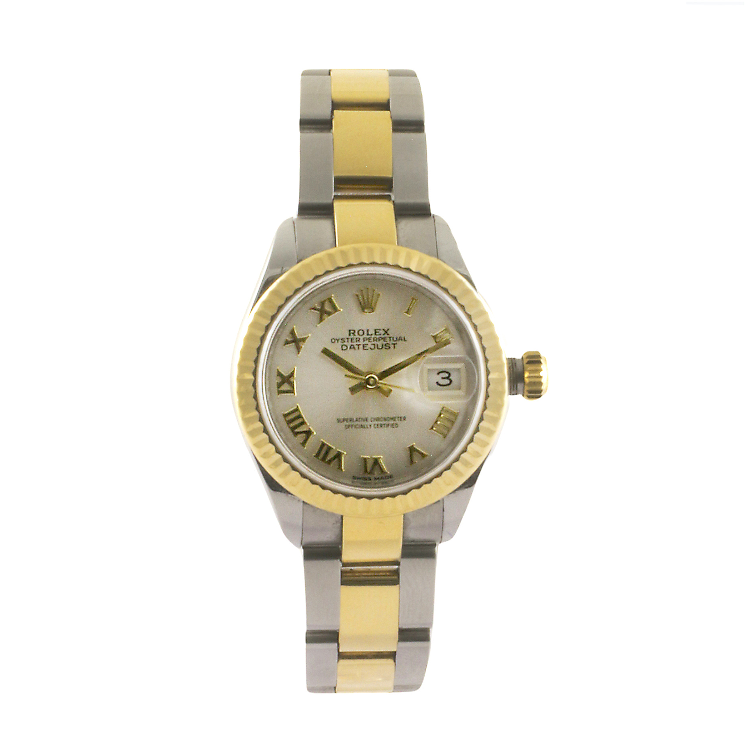 This Rolex Datejust Lady 28 279173 has a champagne roman numeral dial and a bracelet strap. This Rolex has undergone a thorough inspection of water resistance, accuracy, functionality and condition to determine the level of reconditioning required to meet our strict standards. It has also been referenced against technical documents and manufacturer records where available to ensure authenticity and a clean history. All our watches have a 24-month warranty for your peace of mind. One of our skilled polishing technicians has removed marks on the case and bracelet of this watch, brought about by daily wear and tear, which is why this watch does not come with the remaining manufacturer’s warranty.