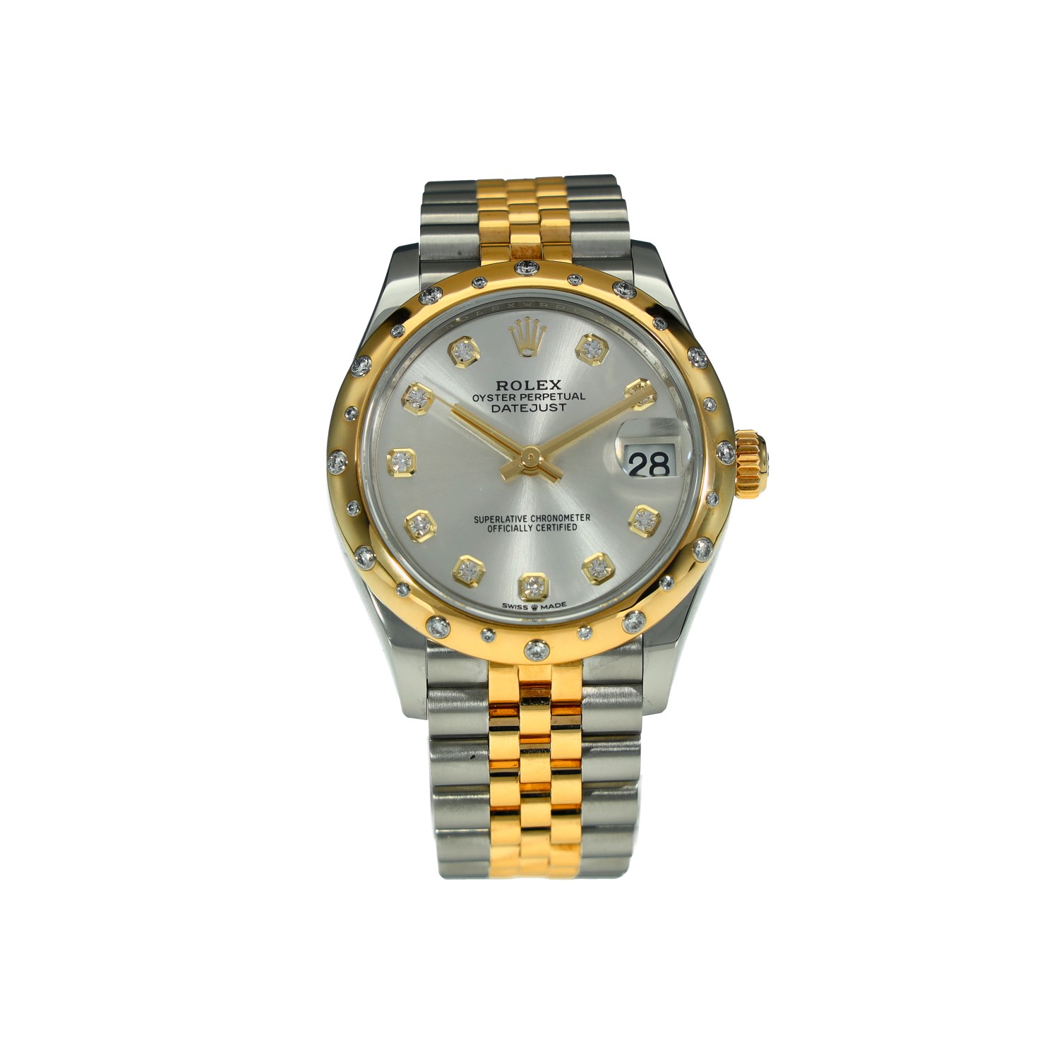This Rolex Datejust Lady 31 278343 RBR has a silver diamond dial and a bracelet strap. This Rolex has undergone a thorough inspection of water resistance, accuracy, functionality and condition to determine the level of reconditioning required to meet our strict standards. It has also been referenced against technical documents and manufacturer records where available to ensure authenticity and a clean history. All our watches have a 24-month warranty for your peace of mind. One of our skilled polishing technicians has removed marks on the case and bracelet of this watch, brought about by daily wear and tear, which is why this watch does not come with the remaining manufacturer’s warranty.