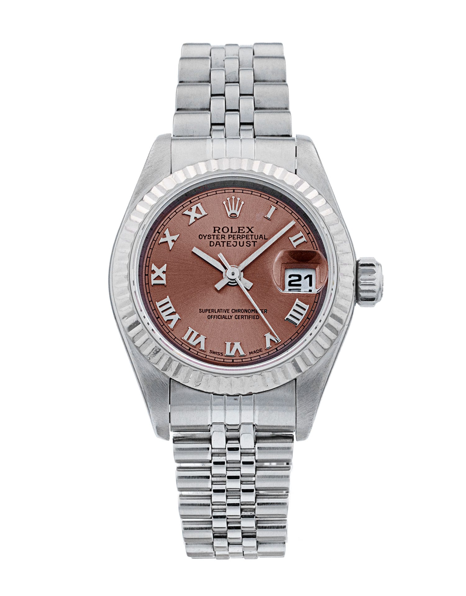 This Rolex Datejust Lady 79174 has a havana roman numeral dial and a bracelet strap. This Rolex has undergone a thorough inspection of water resistance, accuracy, functionality and condition to determine the level of reconditioning required to meet our strict standards. It has also been referenced against technical documents and manufacturer records where available to ensure authenticity and a clean history. All our watches have a 24-month warranty for your peace of mind. One of our skilled polishing technicians has removed marks on the case and bracelet of this watch, brought about by daily wear and tear, which is why this watch does not come with the remaining manufacturer’s warranty.