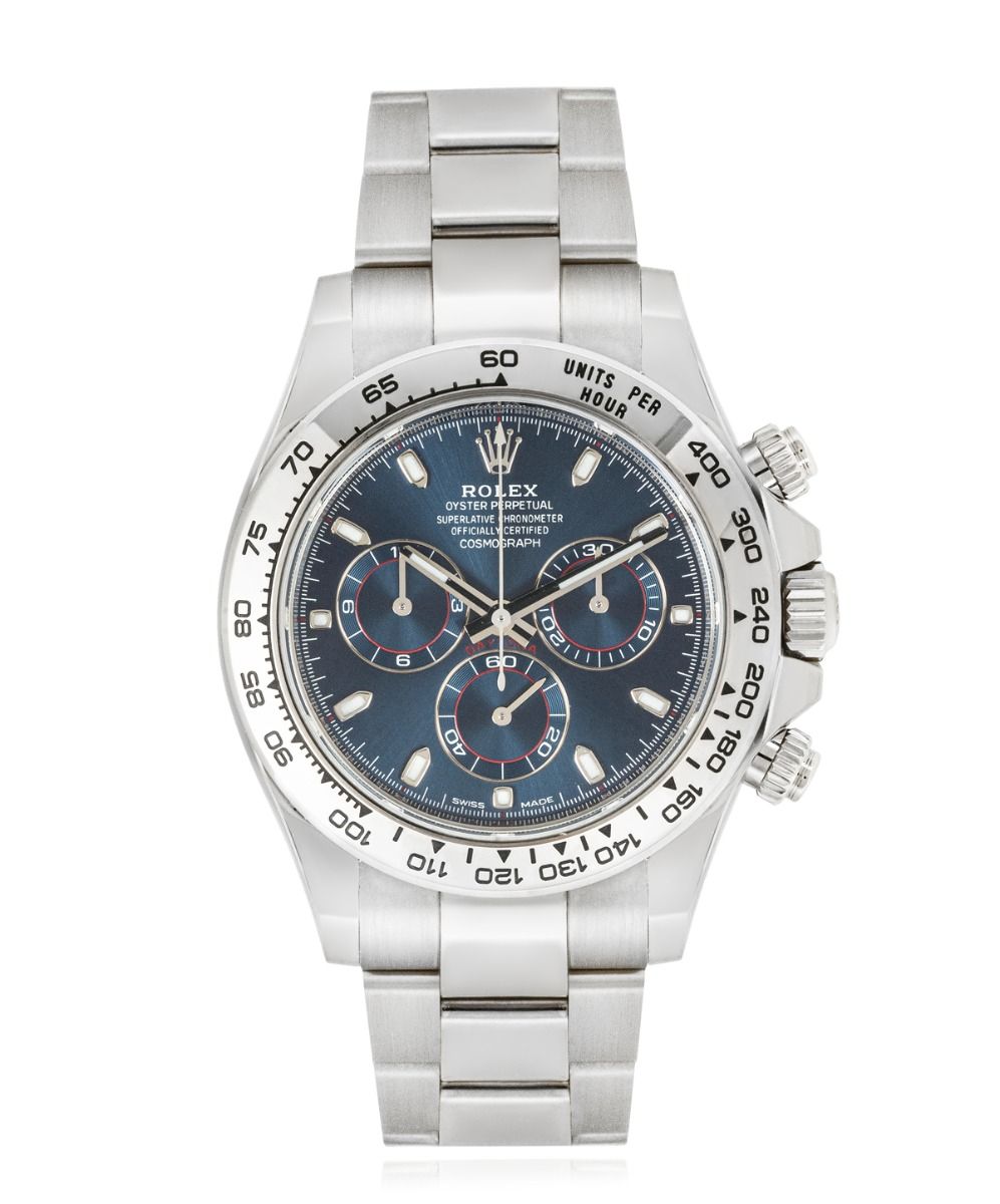 This Rolex Daytona 116509 has a blue baton dial and a bracelet strap. This Rolex has undergone a thorough inspection of water resistance, accuracy, functionality and condition to determine the level of reconditioning required to meet our strict standards. It has also been referenced against technical documents and manufacturer records where available to ensure authenticity and a clean history. Our watches have a 24-month warranty for your peace of mind, in conjunction with any remaining manufacturer’s warranty from new or from service. To maintain the manufacturer’s warranty on this watch, it has not been polished in our service centre.