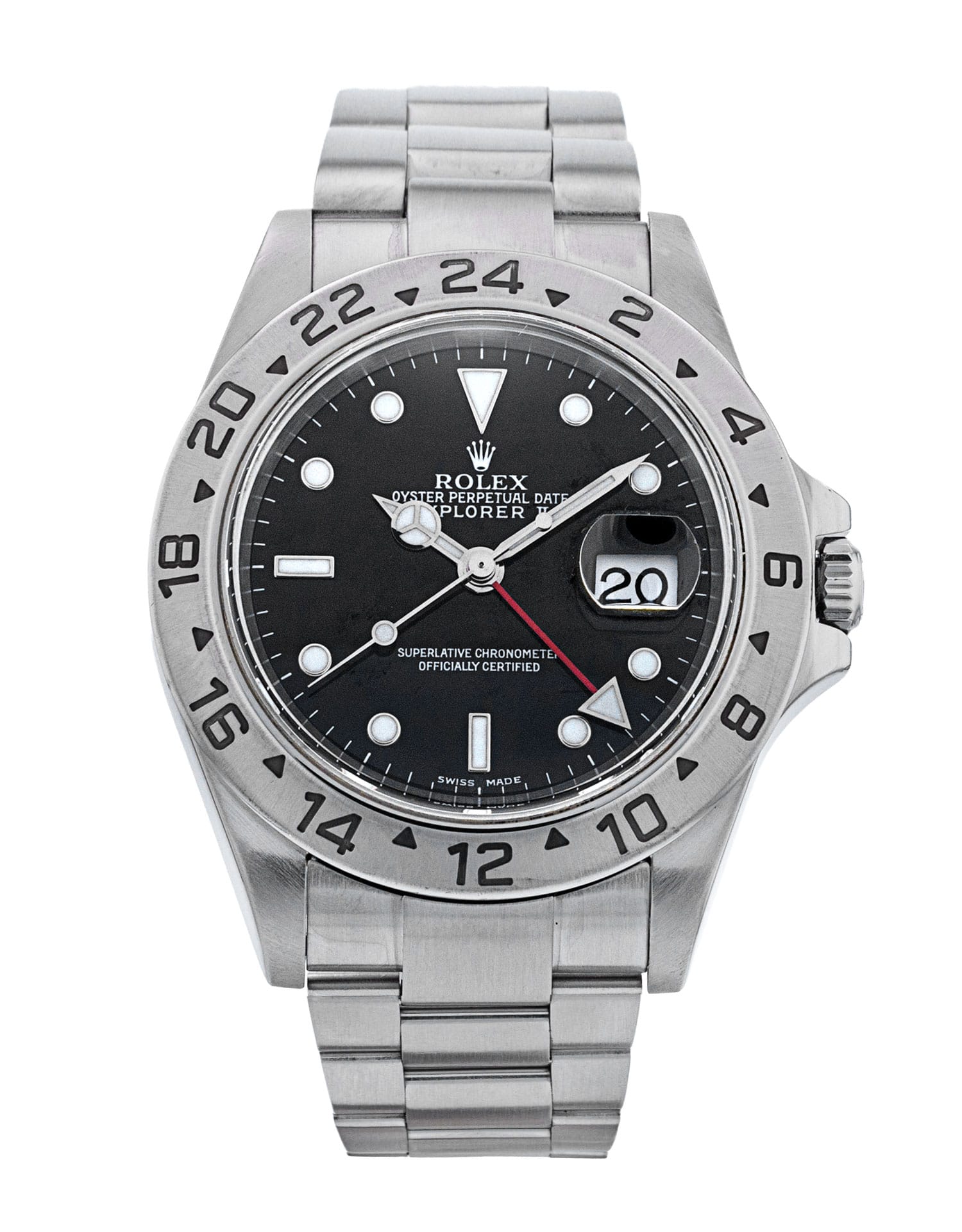 This Rolex Explorer II 16570 has a black dial and a bracelet strap. This Rolex has undergone a thorough inspection of water resistance, accuracy, functionality and condition to determine the level of reconditioning required to meet our strict standards. It has also been referenced against technical documents and manufacturer records where available to ensure authenticity and a clean history. All our watches have a 24-month warranty for your peace of mind. One of our skilled polishing technicians has removed marks on the case and bracelet of this watch, brought about by daily wear and tear, which is why this watch does not come with the remaining manufacturer’s warranty.