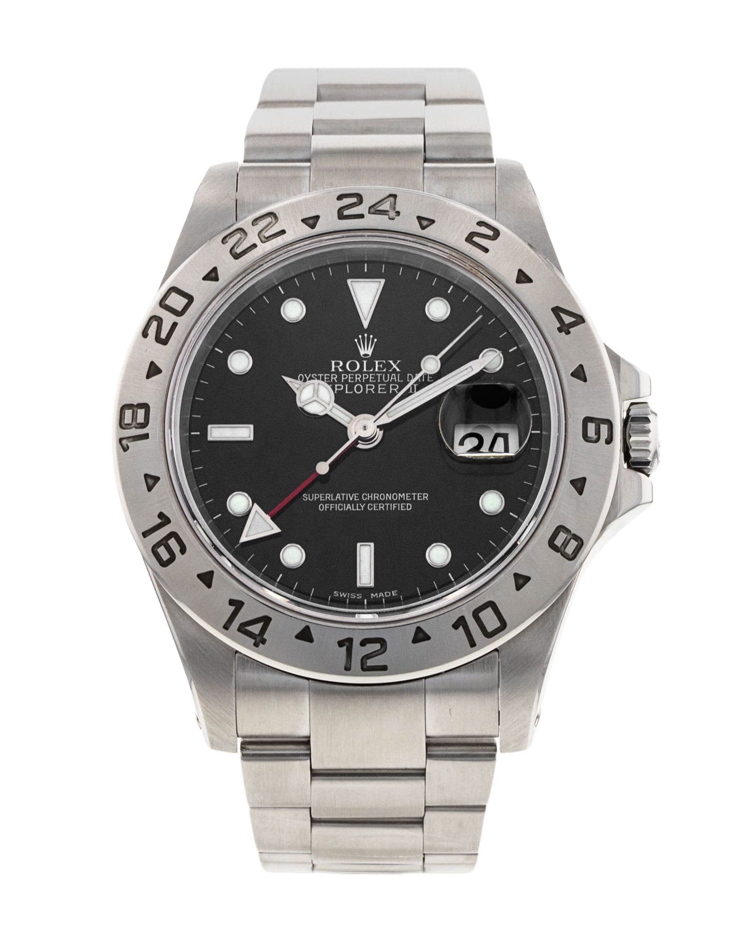 This Rolex Explorer II 16570 has a black dial and a bracelet strap. This Rolex has undergone a thorough inspection of water resistance, accuracy, functionality and condition to determine the level of reconditioning required to meet our strict standards. It has also been referenced against technical documents and manufacturer records where available to ensure authenticity and a clean history. All our watches have a 24-month warranty for your peace of mind. One of our skilled polishing technicians has removed marks on the case and bracelet of this watch, brought about by daily wear and tear, which is why this watch does not come with the remaining manufacturer’s warranty.