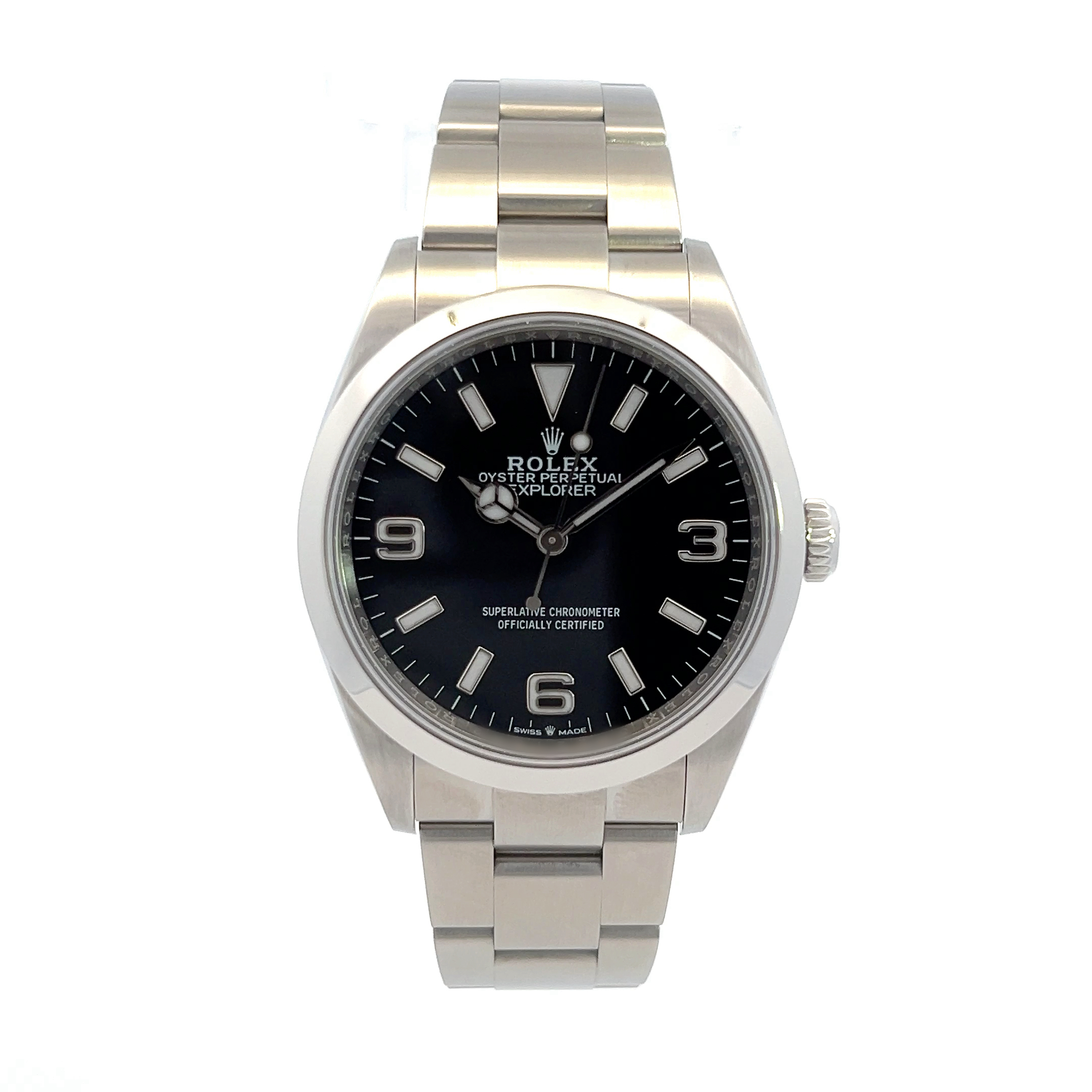 This Rolex Explorer 124270 has a black quarter arabic dial and a bracelet strap. This Rolex has undergone a thorough inspection of water resistance, accuracy, functionality and condition to determine the level of reconditioning required to meet our strict standards. It has also been referenced against technical documents and manufacturer records where available to ensure authenticity and a clean history. Our watches have a 24-month warranty for your peace of mind, in conjunction with any remaining manufacturer’s warranty from new or from service. To maintain the manufacturer’s warranty on this watch, it has not been polished in our service centre.