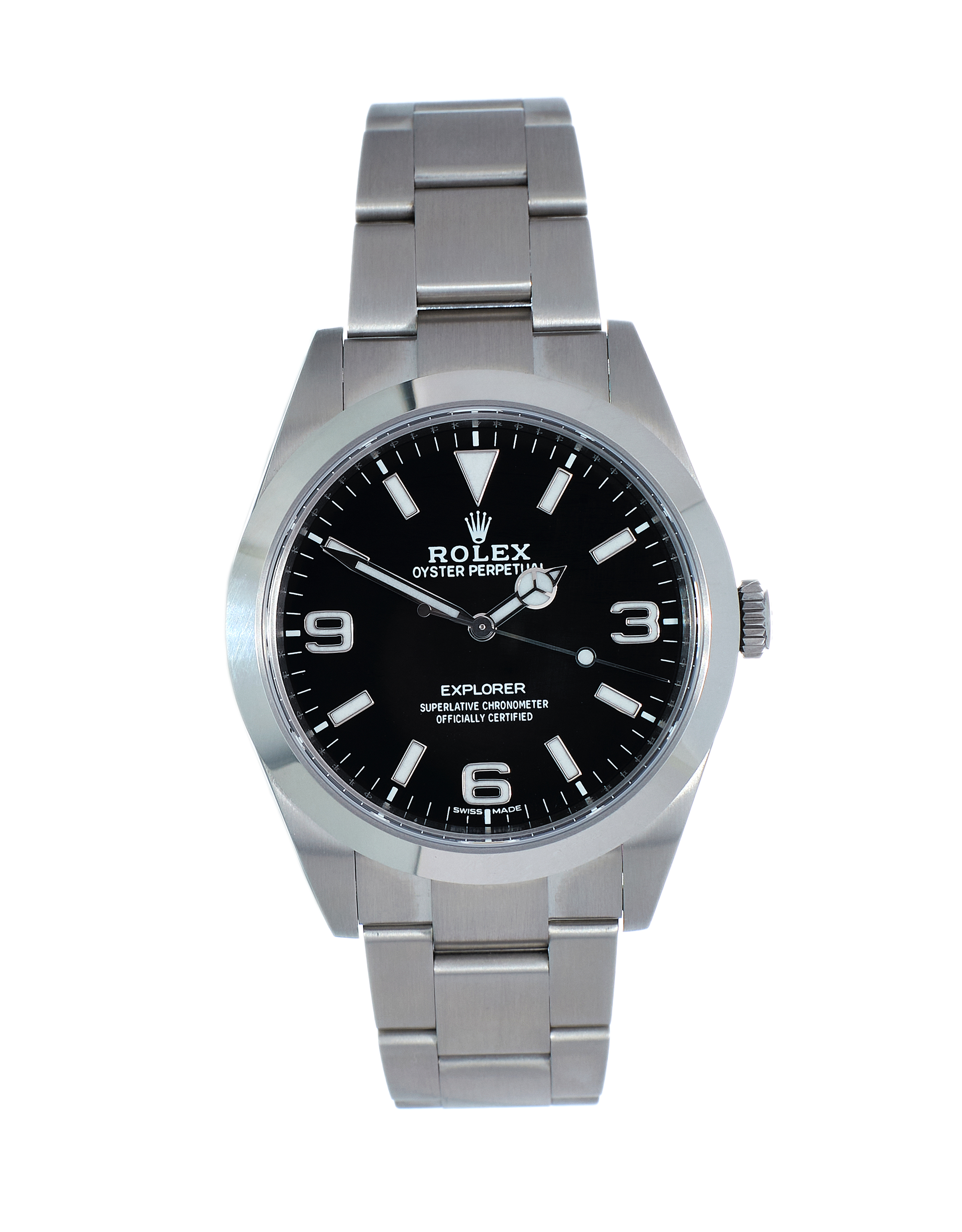 This Rolex Explorer 214270 has a black quarter arabic dial and a bracelet strap. This Rolex has undergone a thorough inspection of water resistance, accuracy, functionality and condition to determine the level of reconditioning required to meet our strict standards. It has also been referenced against technical documents and manufacturer records where available to ensure authenticity and a clean history. All our watches have a 24-month warranty for your peace of mind. One of our skilled polishing technicians has removed marks on the case and bracelet of this watch, brought about by daily wear and tear, which is why this watch does not come with the remaining manufacturer’s warranty.