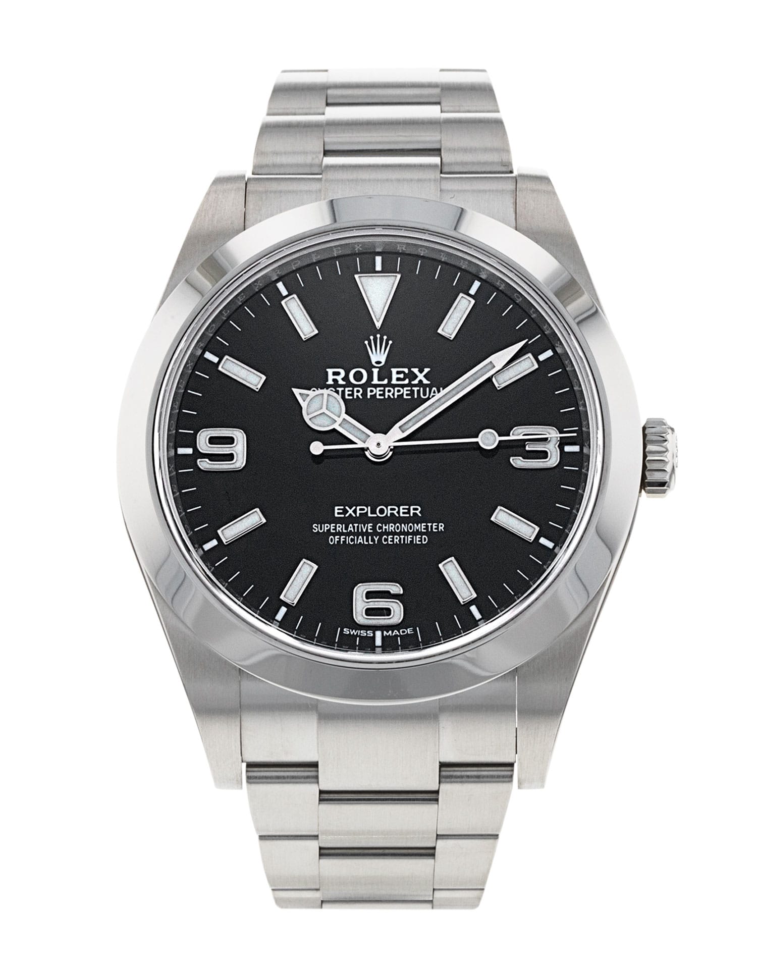 This Rolex Explorer 214270 has a black quarter arabic dial and a bracelet strap. This Rolex has undergone a thorough inspection of water resistance, accuracy, functionality and condition to determine the level of reconditioning required to meet our strict standards. It has also been referenced against technical documents and manufacturer records where available to ensure authenticity and a clean history. All our watches have a 24-month warranty for your peace of mind. One of our skilled polishing technicians has removed marks on the case and bracelet of this watch, brought about by daily wear and tear, which is why this watch does not come with the remaining manufacturer’s warranty.