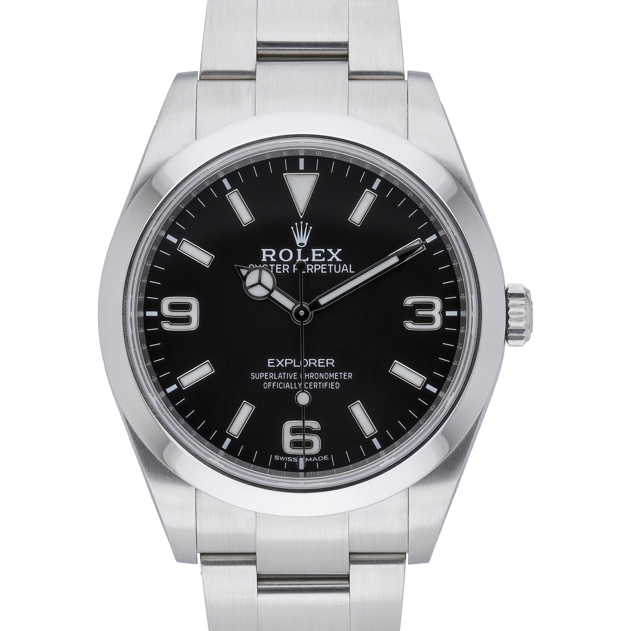 This Rolex Explorer 214270 has a black quarter arabic dial and a bracelet strap. This Rolex has undergone a thorough inspection of water resistance, accuracy, functionality and condition to determine the level of reconditioning required to meet our strict standards. It has also been referenced against technical documents and manufacturer records where available to ensure authenticity and a clean history. All our watches have a 24-month warranty for your peace of mind. One of our skilled polishing technicians has removed marks on the case and bracelet of this watch, brought about by daily wear and tear, which is why this watch does not come with the remaining manufacturer’s warranty.