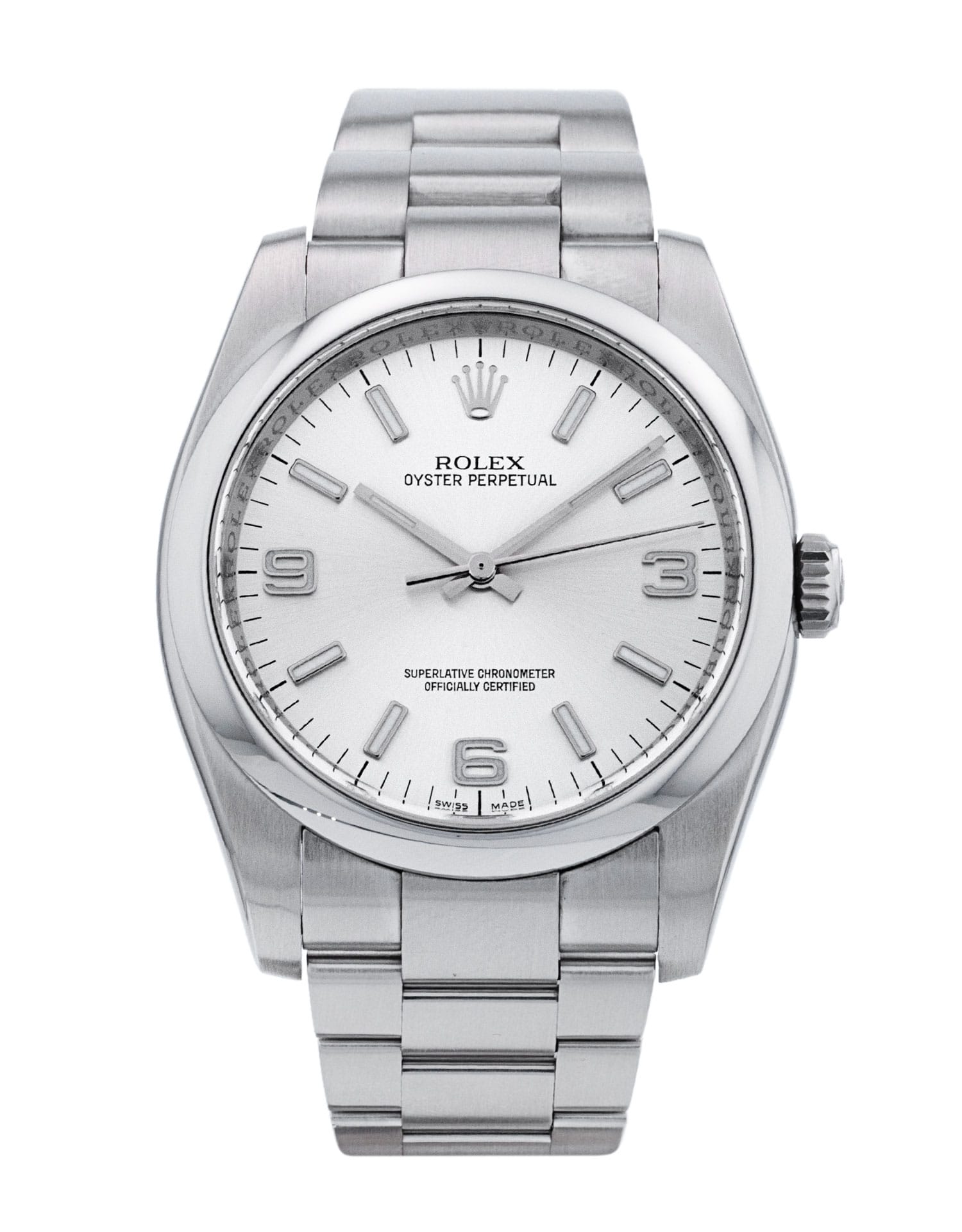 This Rolex Oyster Perpetual 116000 has a silver quarter arabic dial and a bracelet strap. This Rolex has undergone a thorough inspection of water resistance, accuracy, functionality and condition to determine the level of reconditioning required to meet our strict standards. It has also been referenced against technical documents and manufacturer records where available to ensure authenticity and a clean history. Our watches have a 24-month warranty for your peace of mind, in conjunction with any remaining manufacturer’s warranty from new or from service. To maintain the manufacturer’s warranty on this watch, it has not been polished in our service centre.