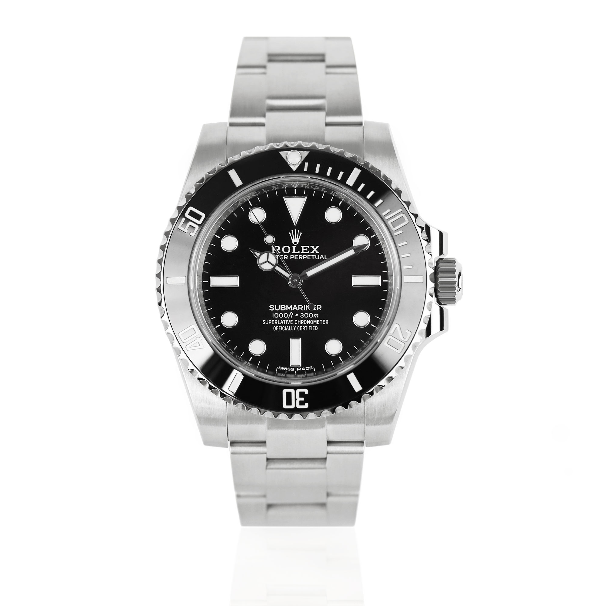 This is a superb example of a 'no-date' Submariner—a model that is prized for its cleaner, pared-down look and symmetrical design that many collectors appreciate. The ref 114060 follows on from and updates the 14060M, which began life with series P in the year 2000—but its predecessor, the plain 14060, was in production as early as 1990. Fans will also point out that the original Submariners, from their introduction in 1953, did not have date windows. While this model continues to use the flawless in-house calibre 3130, it vastly improves the bezel with high-tech ceramic and also upgrades the bracelet.
