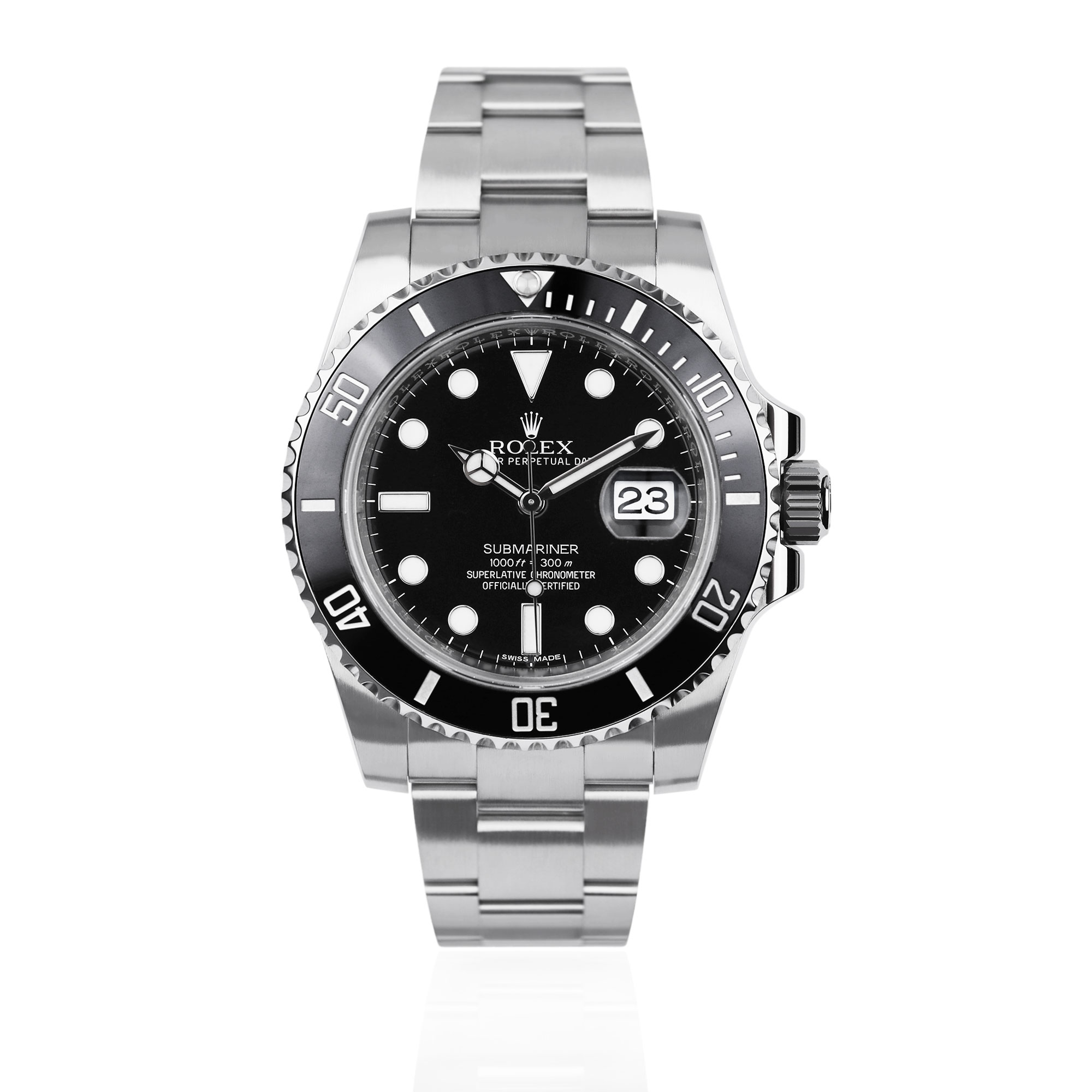 This Rolex Submariner 116610 LN has a black dial and a bracelet strap. This Rolex has undergone a thorough inspection of water resistance, accuracy, functionality and condition to determine the level of reconditioning required to meet our strict standards. It has also been referenced against technical documents and manufacturer records where available to ensure authenticity and a clean history. All our watches have a 24-month warranty for your peace of mind. One of our skilled polishing technicians has removed marks on the case and bracelet of this watch, brought about by daily wear and tear, which is why this watch does not come with the remaining manufacturer’s warranty.