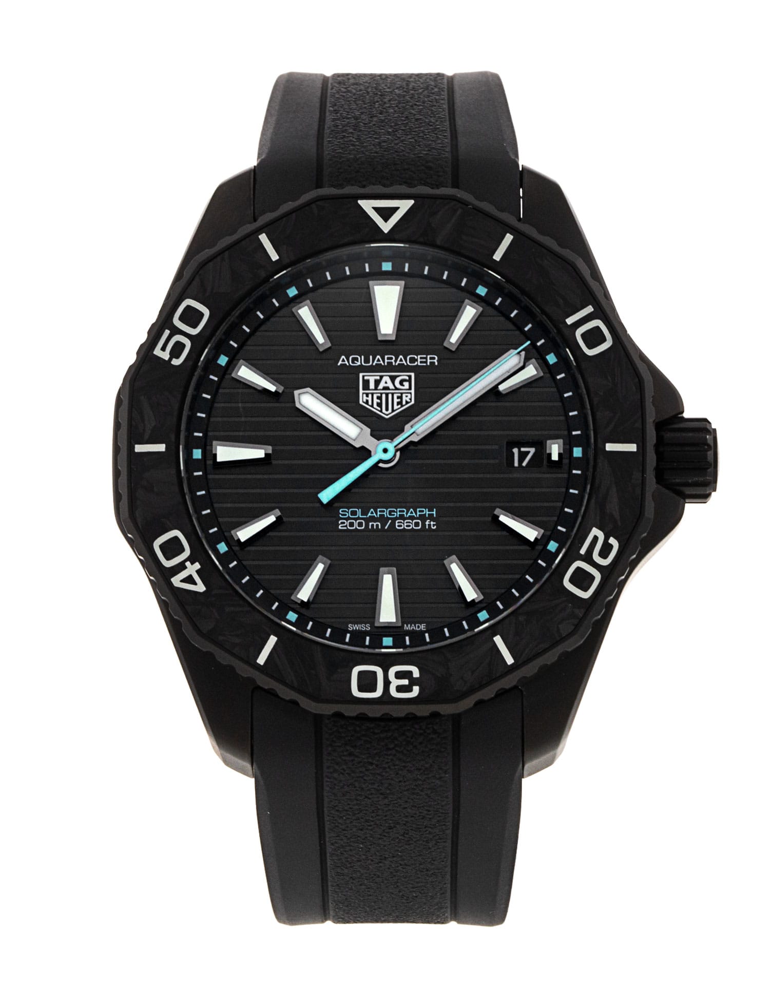 This Tag Heuer Aquaracer WBP1112.FT6199 has a black baton dial and a rubber strap. This Tag Heuer has undergone a thorough inspection of accuracy, functionality and condition at our Tag Heuer certified service centre to determine the level of reconditioning required to meet our strict standards. It has also been checked against our records to ensure authenticity. Our watches have a 24-month warranty for your peace of mind, in conjunction with any remaining manufacturer’s warranty from new or from service.