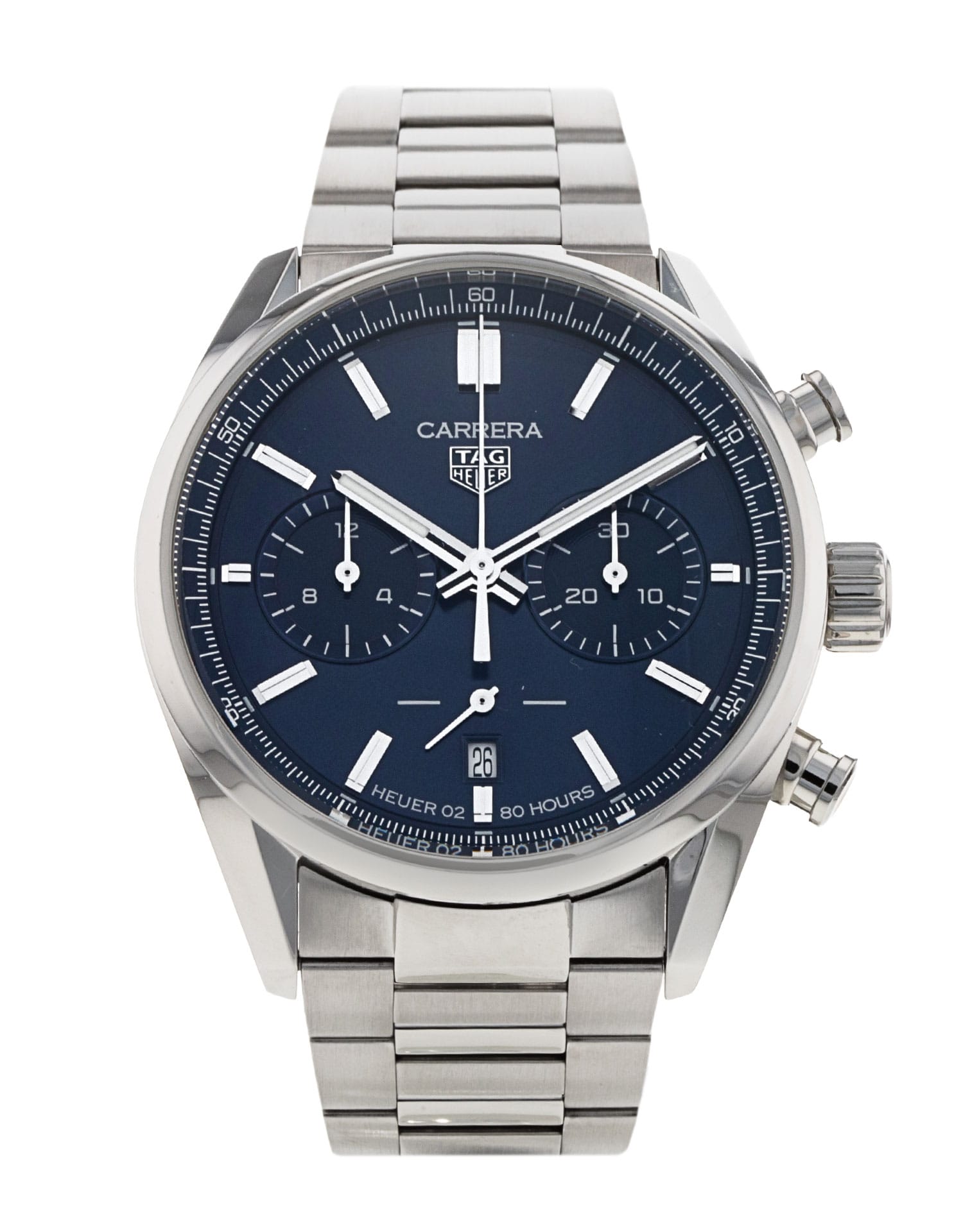 This Tag Heuer Carrera CBN2011.BA0642 has a blue baton dial and a bracelet strap. This Tag Heuer has undergone a thorough inspection of accuracy, functionality and condition at our Tag Heuer certified service centre to determine the level of reconditioning required to meet our strict standards. It has also been checked against our records to ensure authenticity. All our watches have a 24-month warranty for your peace of mind.