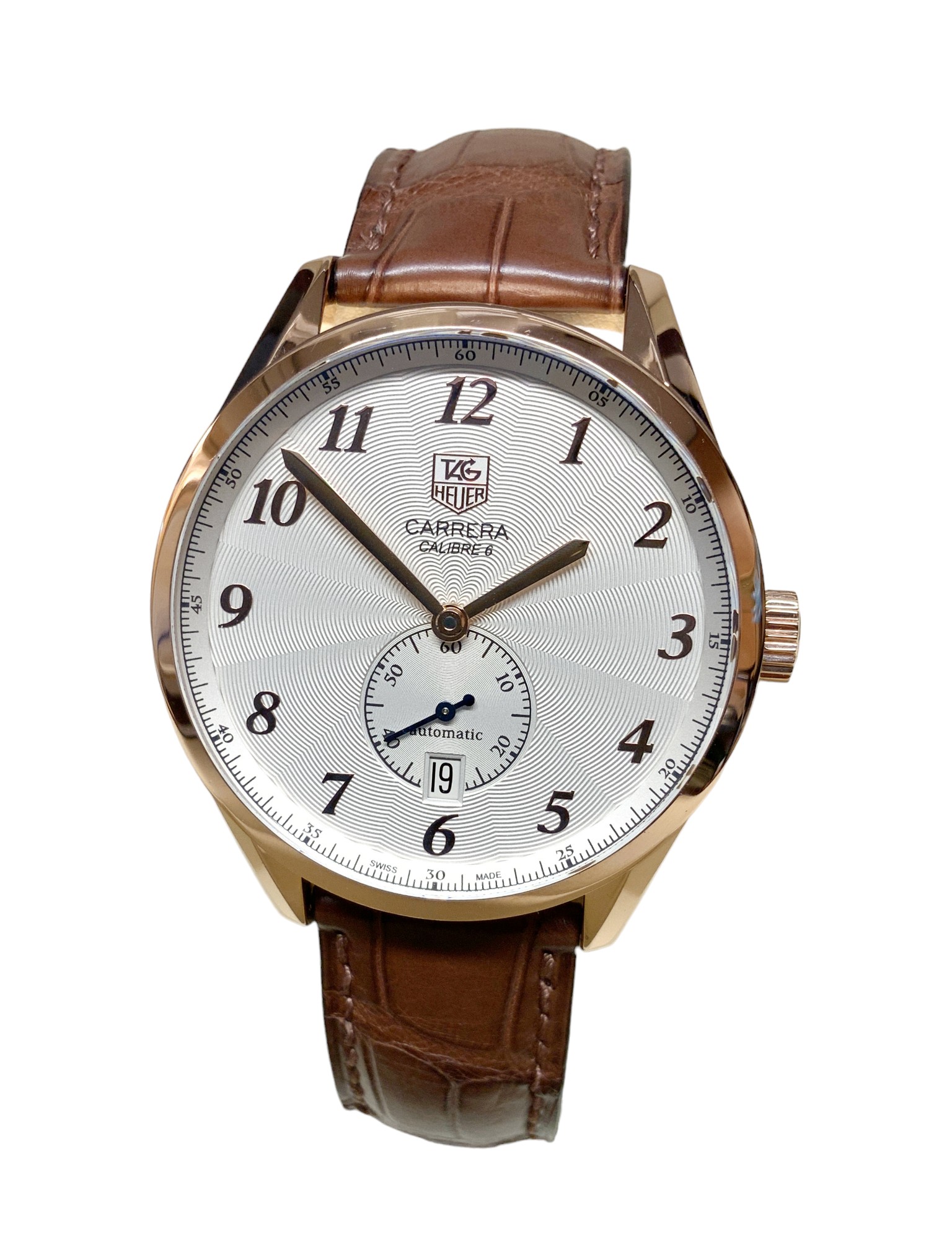 This Tag Heuer Carrera WAS2140.FC8176 has a silver arabic dial and a leather strap. This Tag Heuer has undergone a thorough inspection of accuracy, functionality and condition at our Tag Heuer certified service centre to determine the level of reconditioning required to meet our strict standards. It has also been checked against our records to ensure authenticity. All our watches have a 24-month warranty for your peace of mind.