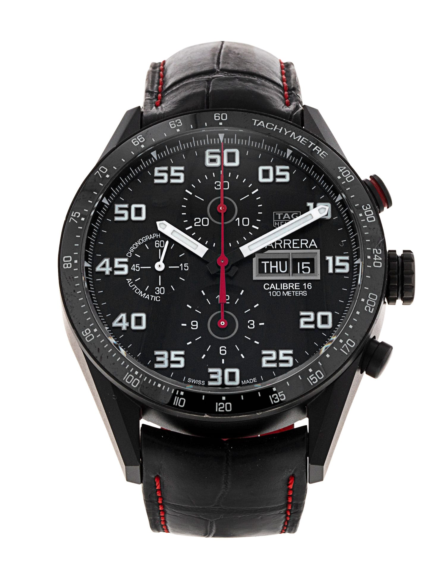 This Tag Heuer Carrera CV2A83.FC6393 has a black dial and a leather strap. This Tag Heuer has undergone a thorough inspection of accuracy, functionality and condition at our Tag Heuer certified service centre to determine the level of reconditioning required to meet our strict standards. It has also been checked against our records to ensure authenticity. All our watches have a 24-month warranty for your peace of mind.