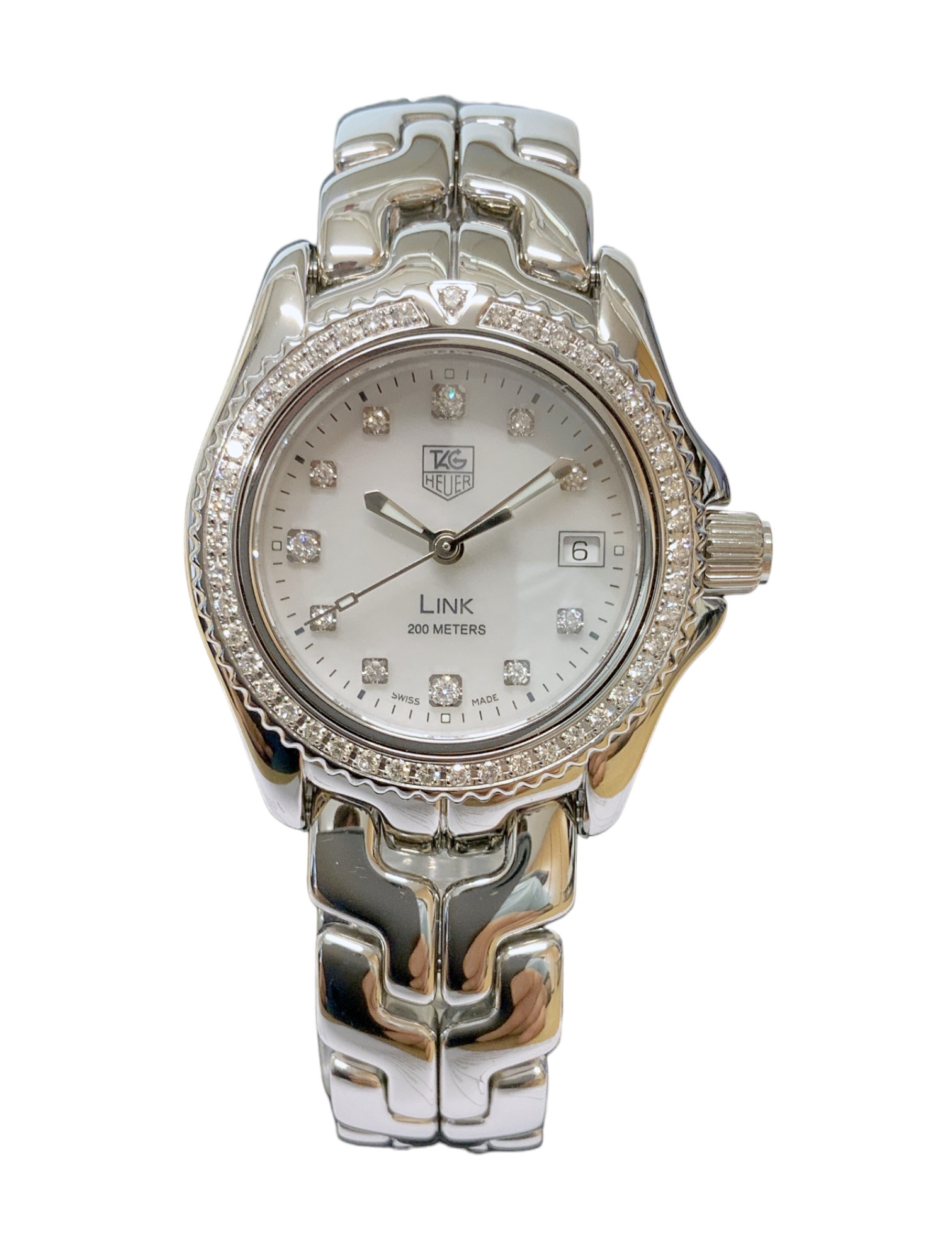 This Tag Heuer Link WT131E.BA0577 has a mother of pearl white - diamond dial and a bracelet strap. This Tag Heuer has undergone a thorough inspection of accuracy, functionality and condition at our Tag Heuer certified service centre to determine the level of reconditioning required to meet our strict standards. It has also been checked against our records to ensure authenticity. Our watches have a 24-month warranty for your peace of mind, in conjunction with any remaining manufacturer’s warranty from new or from service.