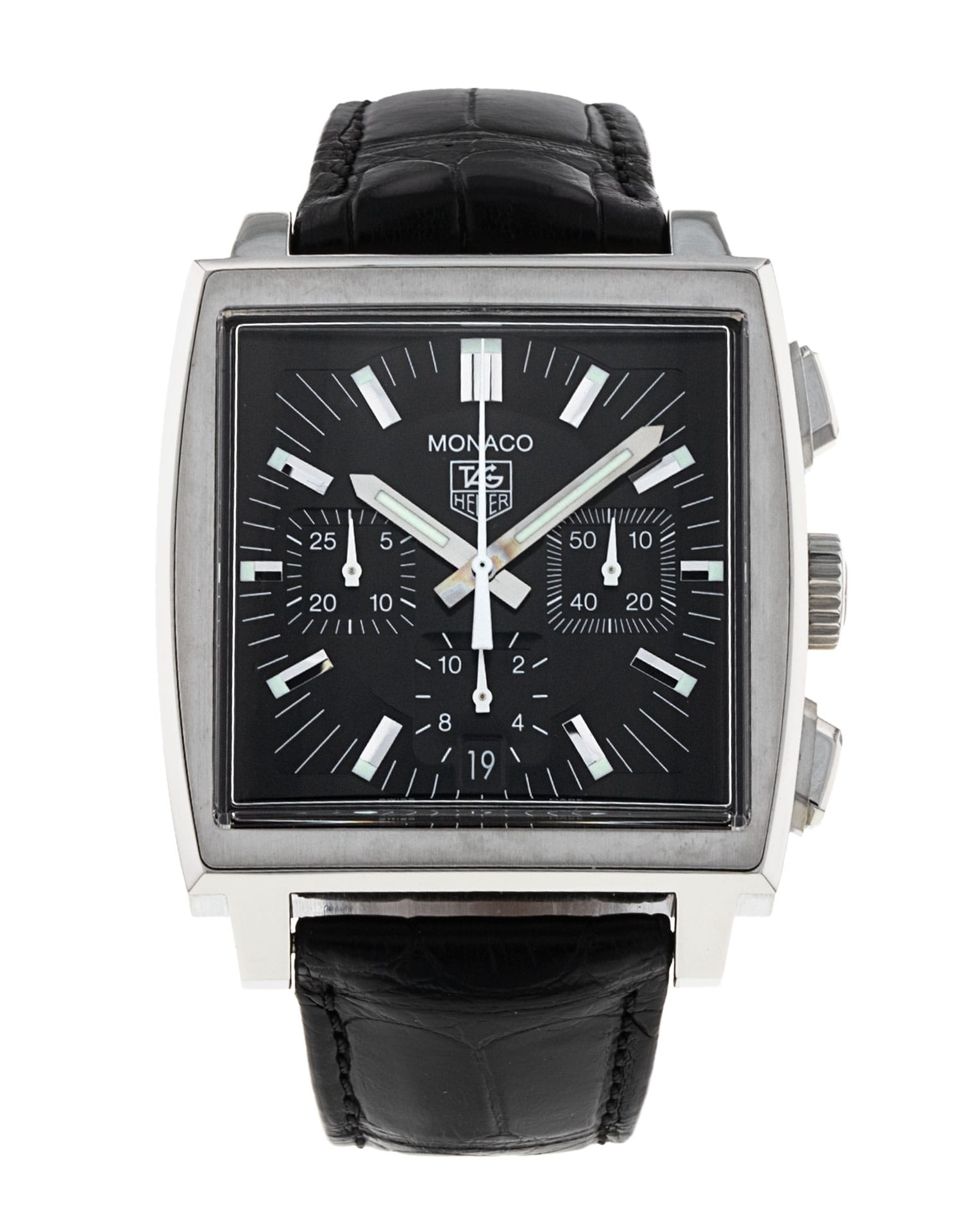 This Tag Heuer Monaco CW2111.FC6177 has a black baton dial and a leather strap. This Tag Heuer has undergone a thorough inspection of accuracy, functionality and condition at our Tag Heuer certified service centre to determine the level of reconditioning required to meet our strict standards. It has also been checked against our records to ensure authenticity. All our watches have a 24-month warranty for your peace of mind.