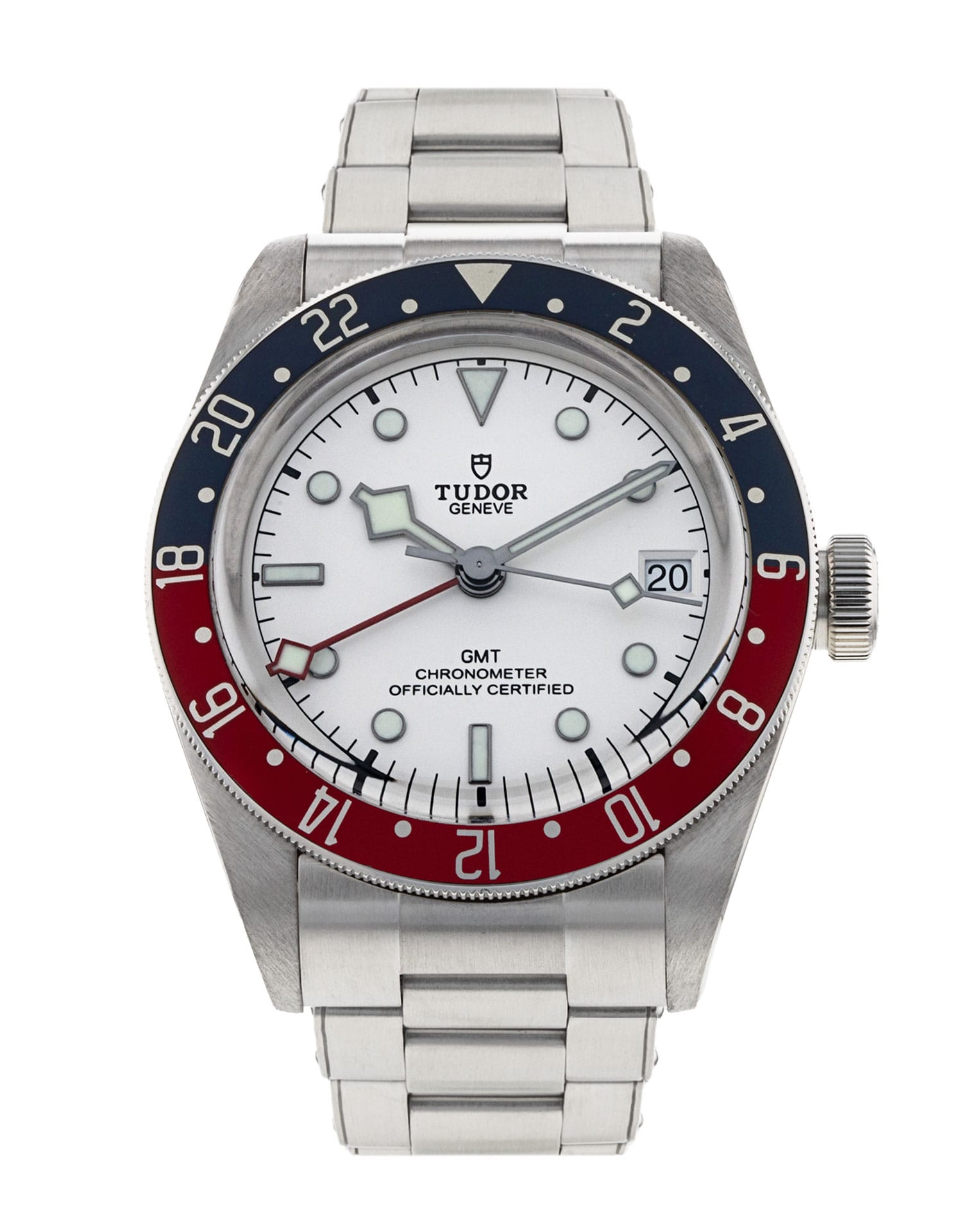 This Tudor Black Bay GMT M79830RB-0010 has a opaline dial and a bracelet strap. This Tudor has undergone a thorough inspection of water resistance, accuracy, functionality and condition to determine the level of reconditioning required to meet our strict standards. It has also been referenced against technical documents and manufacturer records where available to ensure authenticity and a clean history. All our watches have a 24-month warranty for your peace of mind. One of our skilled polishing technicians has removed marks on the case and bracelet of this watch, brought about by daily wear and tear, which is why this watch does not come with the remaining manufacturer’s warranty.