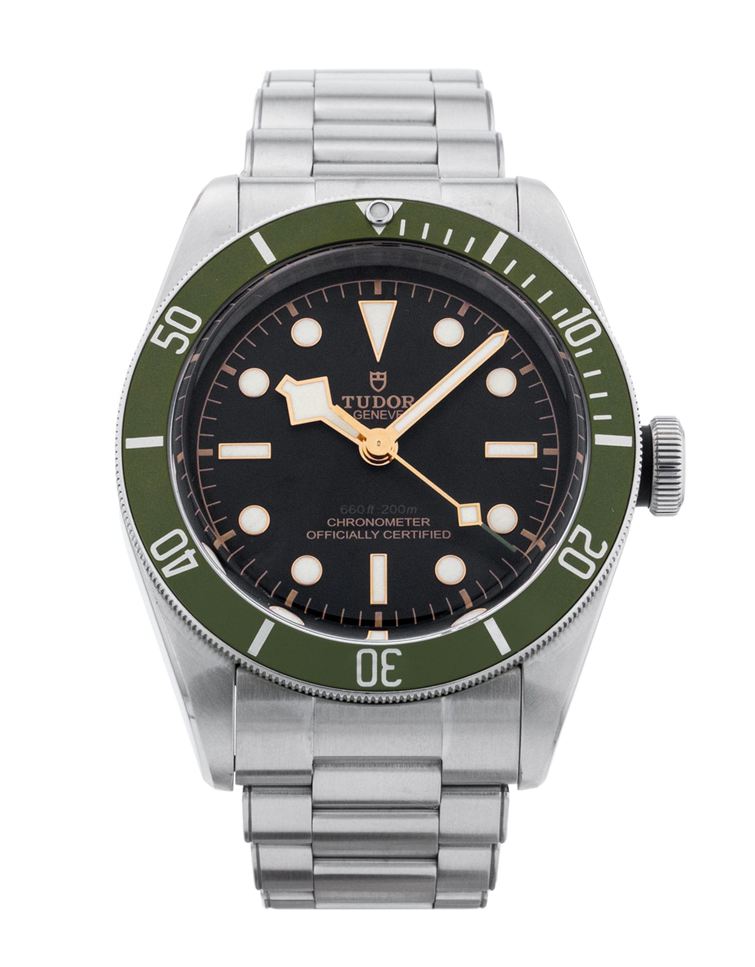 This Tudor Heritage Black Bay 79230G has a black dial and a bracelet strap. This Tudor has undergone a thorough inspection of water resistance, accuracy, functionality and condition to determine the level of reconditioning required to meet our strict standards. It has also been referenced against technical documents and manufacturer records where available to ensure authenticity and a clean history. All our watches have a 24-month warranty for your peace of mind. One of our skilled polishing technicians has removed marks on the case and bracelet of this watch, brought about by daily wear and tear, which is why this watch does not come with the remaining manufacturer’s warranty.